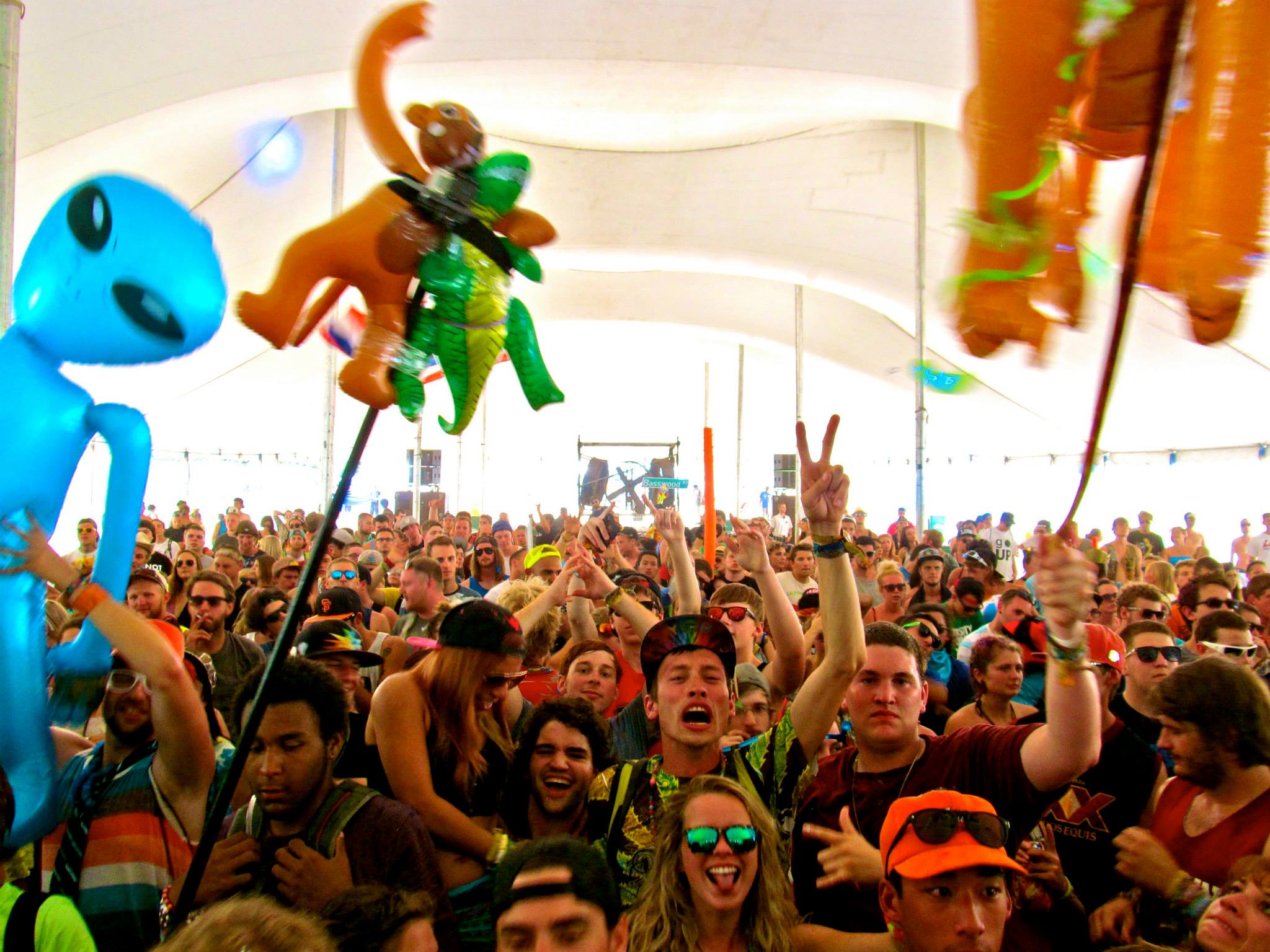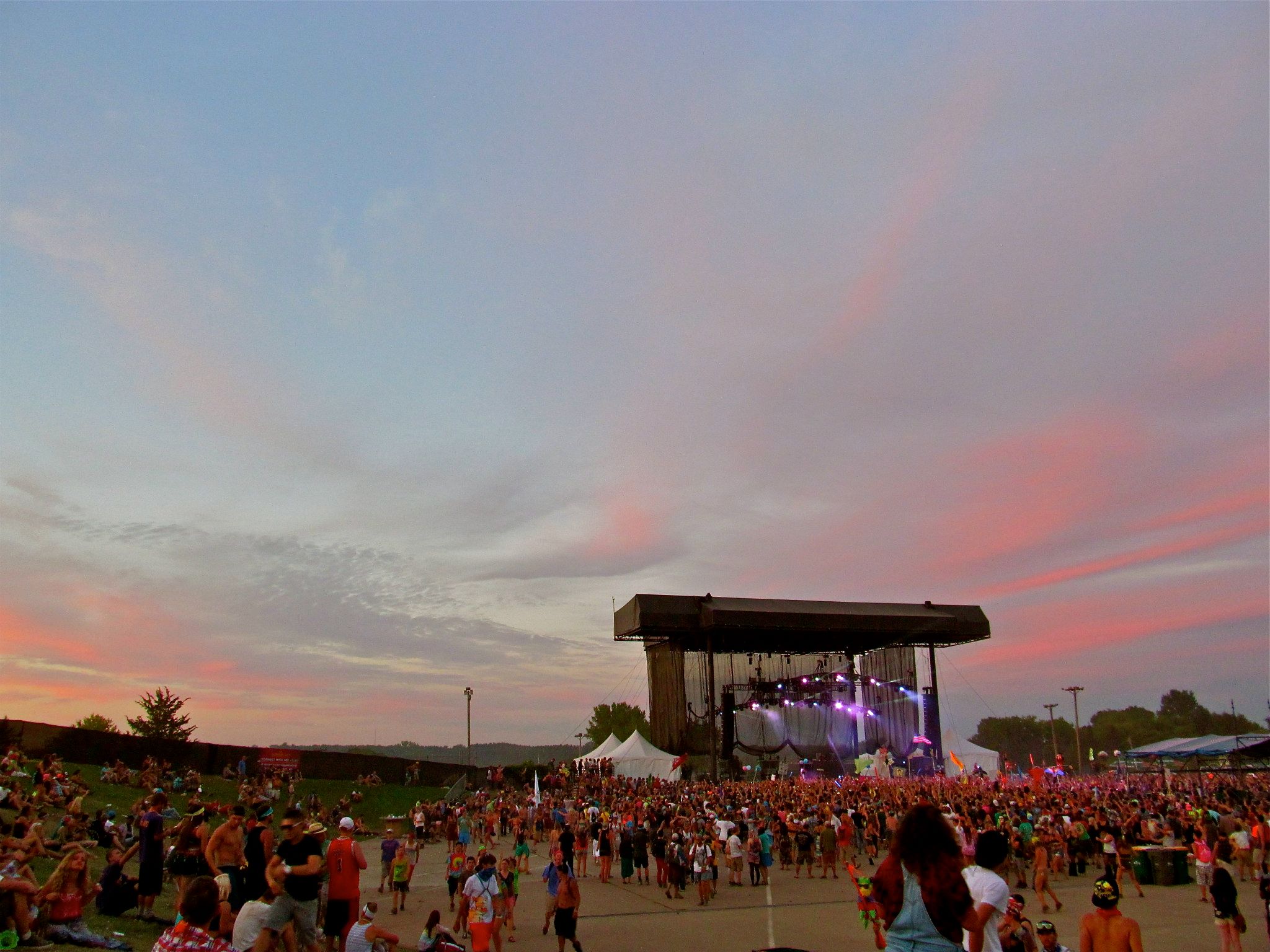 The weather could not have been more perfect Friday afternoon as festival goers arrived at Summer Set and began to set up camp for the weekend ahead. In what could have been easily mistaken for an 80’s workout video, thousands of eager teenagers and early twenty-something’s flooded the festival grounds to dance the night away, sporting tube tops, glowsticks, tutus, and neon spandex galore. Even Richard Simmons himself would have been proud of the vivid mixture of bright colors resembling a spring break gone horribly wrong. Many campers got creative with their site, deckingout their tents and canopies with tapestries, state flags, and miscellaneous art work. The campgrounds were split into a north and a south lot, with the main concert bowl area dividing the two lots. Each camping lot contained a general store, bathrooms and showers, and water spigots to re-fill your water bottles.