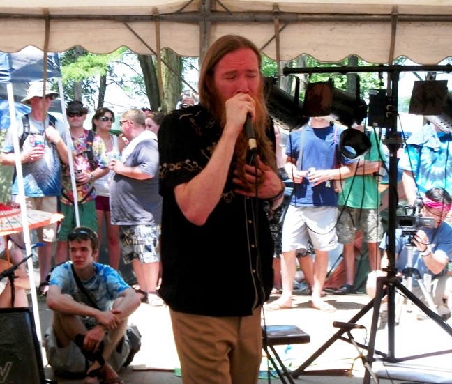 The spirit of my mountain home Colorado called from the shaded camping stage. Mountain Standard Time was tooting their horns and I can’t get enough of these guys. I ducked back into the comfort of the woods, what I thought of as the ewok village, and tried as best I could to get close to the MST sounds that were jumping from under the camping stage canopy. It was a difficult task considering the audience had packed in toe to toe with the band. Most in the Midwest had yet to see the legend of the Mountain Standard Time. Thanks to their minstrel wanderings later Saturday night at about 2 am, I think most won’t forget them now. Full on funk mardi-gras was matched with humility and grace by the band. “We originally left Colorado in a hail storm that promised a huge snow. We followed the sun to Summer Camp. You had a lot of choices this afternoon, Thanks for coming.” They played the favorite Whiskey Blanket that I had seen them perform just a couple weeks earlier at the first ever Waterfront Festival in Bellvue, CO. It was remarkable to see the sunny Summer Camp version as opposed to that wet, damp, and cold day out in Colorado.