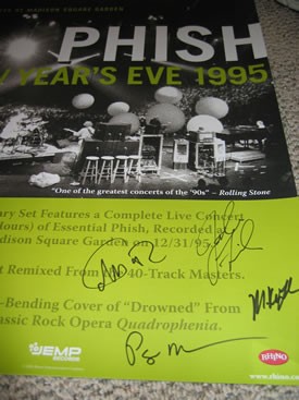 In addition, the auction features a unique item donated by Phish bassist Mike Gordon and his mother Marjorie Minkin (with funds donated to the Triangle Arts Foundation), items signed by Phish, laminates from Phish festivals/tours, as well as other rarities.