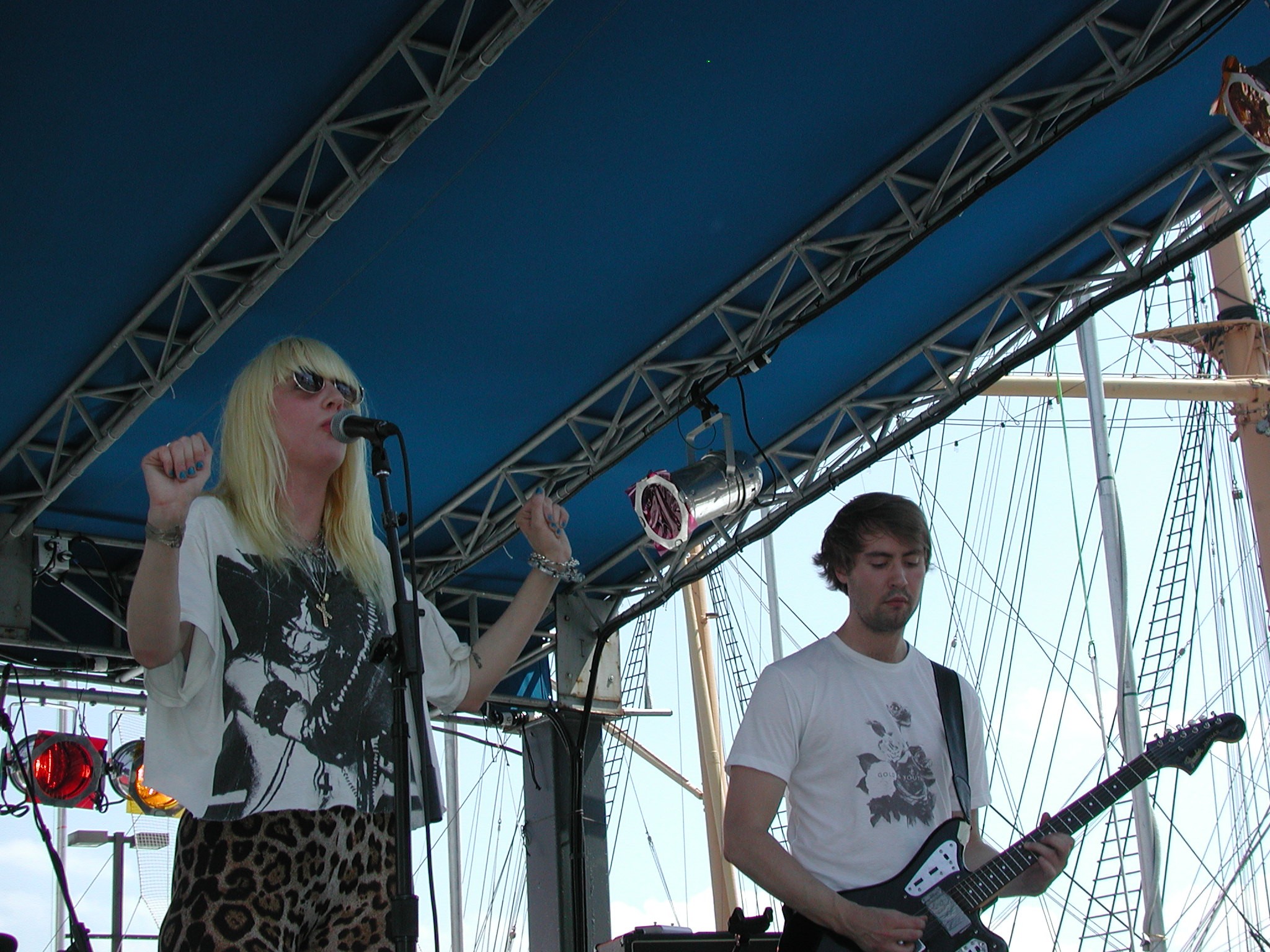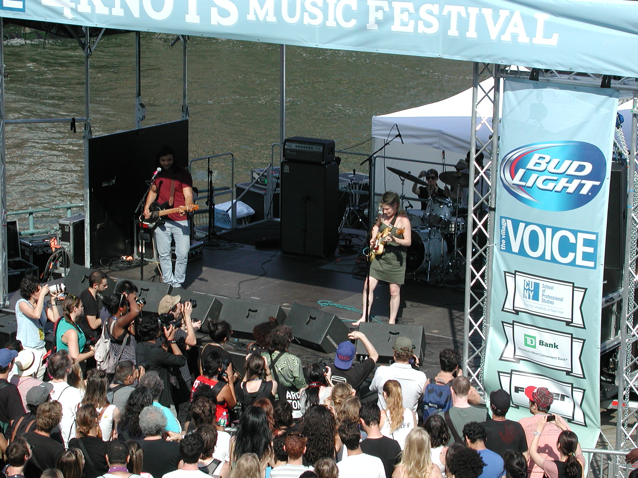 worth the brutal price of watching music on the East River with the Brooklyn Bridge in the background. Besides their catchy single “Stoned and Starving” being my new self-appointed theme song, their guitar hook heavy and distortion laden brand of “indie-rock” hit the mark on all levels. They struck me as a cross between Sonic Youth and Rival Schools, great song-writing and straight up rock and roll with a punk edge to it.