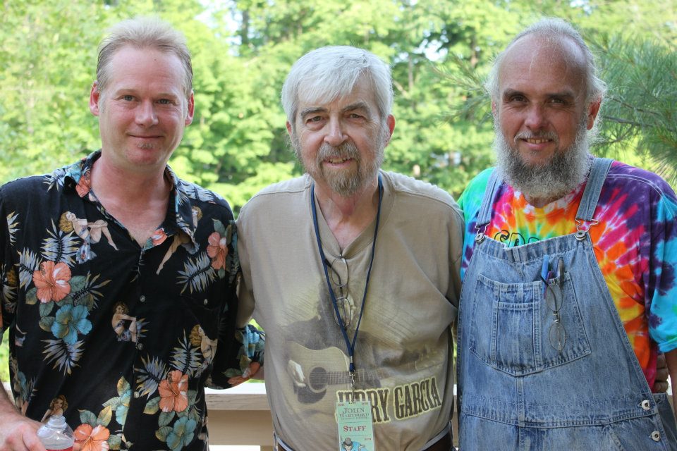 (l-r) John Hartford’s son Jamie Hartford, John’s long-time friend and event founder John Hotze, and bluegrass legend Larry Perkins