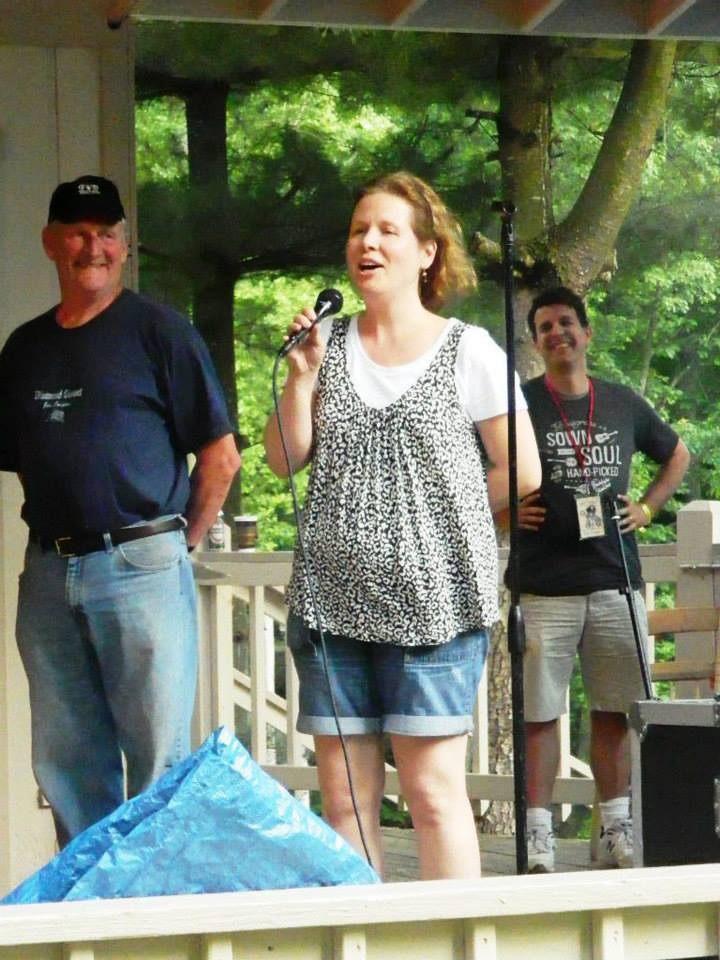 Suddenly Jamie stops singing and says, “That lady over there is not alright”. Someone by the volunteer station is on the ground with a medical issue. This is the first time at JHMF anything like this has happened. Jamie comes rushing down off the stage carrying two bottles of water with him. Katie, Jamie’s sister rushes down from the pavilion area towards the scene. It’s determined an ambulance is needed but no one is around with a radio on them. No radio, oh crap! With this poor woman being watched by her husband and a large crowd I start to run up the hill. I’ve got to find Bob, festival manager and get an ambulance here now. My old ass runs up that hill and I’m already out of breath and I see help. The grill cheese vendor in a golf cart! Damn I don’t know his name but there he is on his golf cart when I jump on the back and plead with him to get me to the hospitality tent as quickly as you can it’s an emergency, thanks grill cheese man!