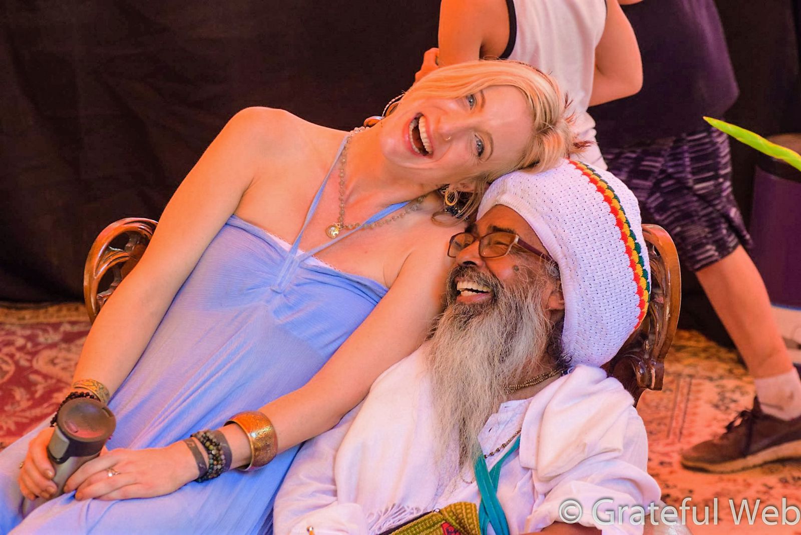 That evening Blue went to the Purple Star Temple, just behind the main stage. There he saw Jaya Lakshmi and Ananda chanting mantras and singing kirtan. And there she remained until the end of the performance, entranced and entrained upon the holy names of God. They performed some other transcendental tunes, helping to build the bridge a bit stronger and longer.