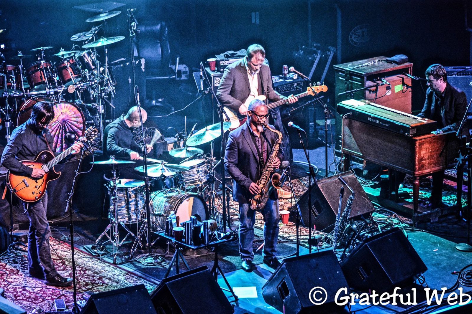 After a lengthy set break, the boys got right back into rhythm in a set that would feature multiple debuts for the band, carrying the rockabilly theme from the first set on into the second set with a rollicking rendering on the one-man band Jesse Fuller’s “Beat it on Down the Line”, complete with Magner, Krasno, and Hamilton all taking solos during the jam. The opening notes to “Estimated Prophet” were met with an uproarious response from the crowd, and the song gave way to a short but sweet “The Music Never Stopped”, which then slipped into the “Drums” > “Space” segment of the show. Seeing Billy solo during “Drums” brought back imagines of the Dead’s “Drums” during the ’72 – ’74 period and Billy proved he was obviously more than up to the task. After the psychedelic session had concluded, the band emerged from the chaos to take on perhaps the most challenging piece of the night in “Mission in the Rain”. Hamilton did a remarkable job vocally on the song, but that did not overshadow the patient guitar interplay between Hamilton and Krasno, as the crowd showered the band with expected appreciation as a rising cheer arose during the apropos words “There’s some satisfaction in the San Francisco rain”. Fittingly, the band took us to space one more time after the beautiful “Mission” before coming home to land with their takes on “Terrapin Station” and “One More Saturday Night”. After a short break, the band returned for a 2-song encore starting with a tribute to the recently passed Merle Haggard in playing “Mama Tried”, then impeccably segueing into “Brokedown Palace” and offering the crowd to “Fare Thee Well” and “Listen to the river sing sweet songs, to rock my soul”.