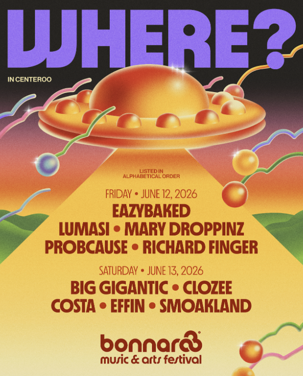 Late nights at Bonnaroo 2026 will also feature nightly parties in Outeroo, as well as all-night sets at the fan-favorite Where Stage, which is relocating for the first time to its new home directly in Centeroo. The Where Stage will see performances from Eazybaked, Lumasi, Mary Droppinz, Prob Cause, and Richard Finger (Friday, June 12) and Big Gigantic, Clozee, Costa, Effin, and Smoakland (Saturday, June 13).