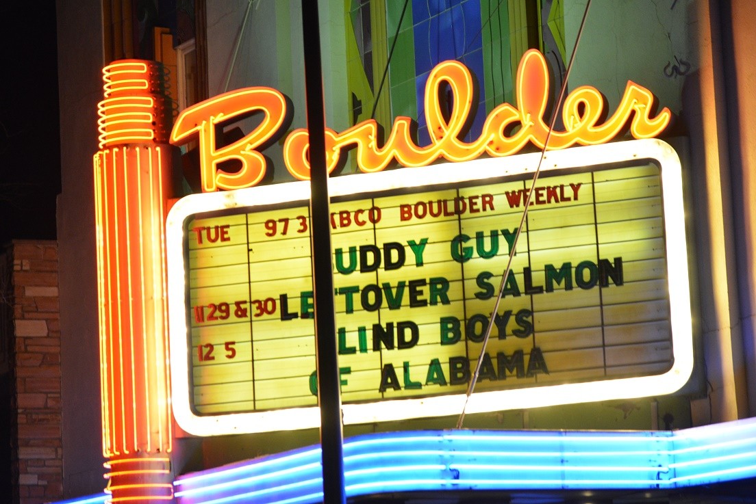 Because of his ever expanding influence on some of the greatest musicians of all time, Buddy said that he was going to show us where Jimi Hendrix got some of his stuff. He said, “I was in New York playing Muddy Waters stuff in a small club, and I didn’t even know who the fuck he was. He walked in and I was playing…(insert “Voodoo Chile” intro).” It was loud! He told us, “I want you to get close to me. I want you to get as close as you can like Siamese twins.” His signature walk through the entire Boulder Theater while playing guitar was what he meant by “getting close.” When he finally got back on stage he talked about B.B. King and other blues influences on music including hip hop. He said blues guys were singing hip hop before hip hop came out. Then he posed the question, “Do you want me to sing blues hip hop?” After the approval he sang old blues lyrics that had us hysterically laughing when he referred to his sister who went to milk, but didn’t know how. It was because his sister was milking the bull by his (insert expletive).” Guy explained that he grew up in Louisiana with no running water until age 17. He took care of his ailing mother as the eldest son, and for entertainment, he made his first guitar after listening to a stretched rubber band. He admitted to not knowing how to read music, but also detailed how many musicians did not. He continued his history lesson by describing and playing his influences like Albert King, and John Lee Hooker’s “Boom! Boom!”