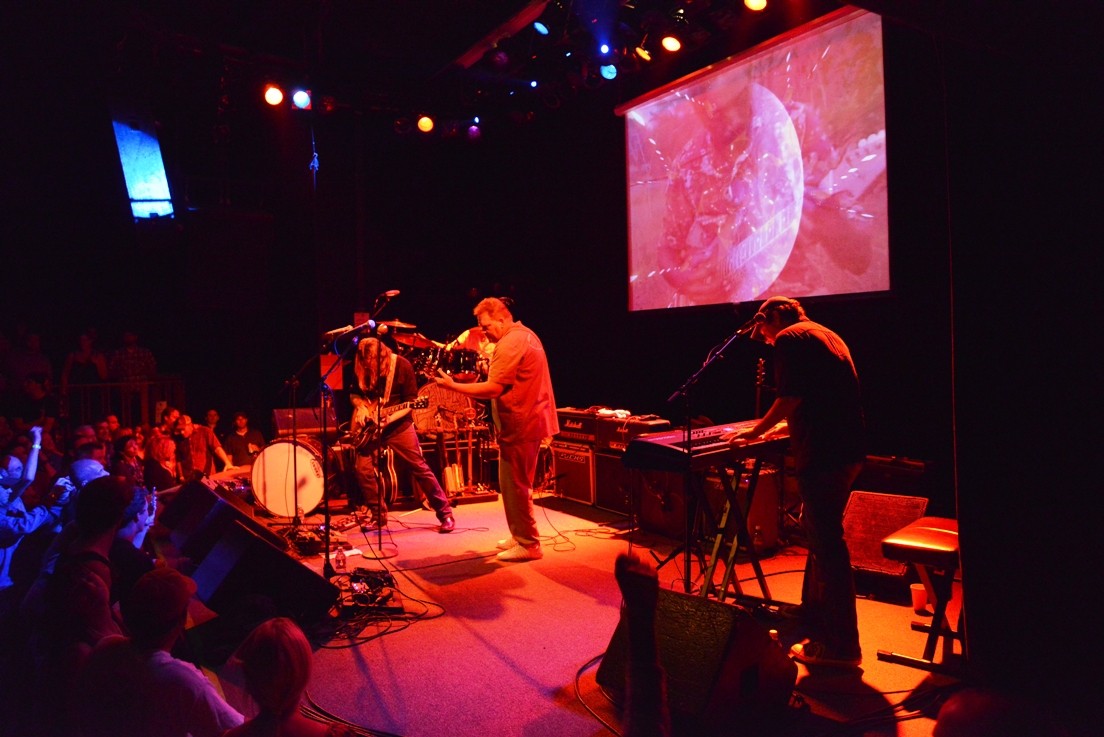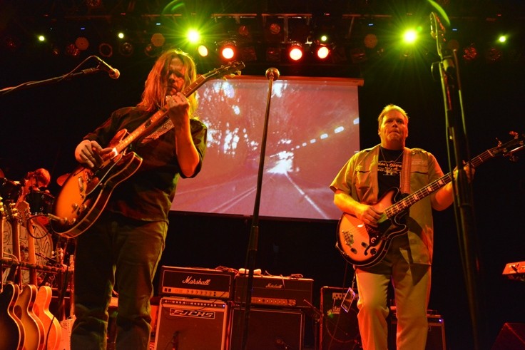 Once in the theater, a short-haired 50-something woman grabbed my attention. Simply put, she looked like the happiest person I had ever seen. I asked her what her secret was and she beamed bandward. “Been following them for 15 years and never got this close to the stage!” she enthused. “Pure bliss!” After a few songs, I could see her point: those cats weren’t missing a whole lot so far as I could tell. With an air of practiced ease and southern ’tain’t-no-rush pacing, Missing Cats were reaching out and touching hearts with classic boogie-woogie keyboard riffs and soul-filling tunes like “Body in the River” and “Sweet Mary”. Toward the end of the set, a gently wasted, teary-eyed guy looked up at JoJo Hermann and wailed out “that’s SUCH a beautiful song!” and, well, I had to agree.