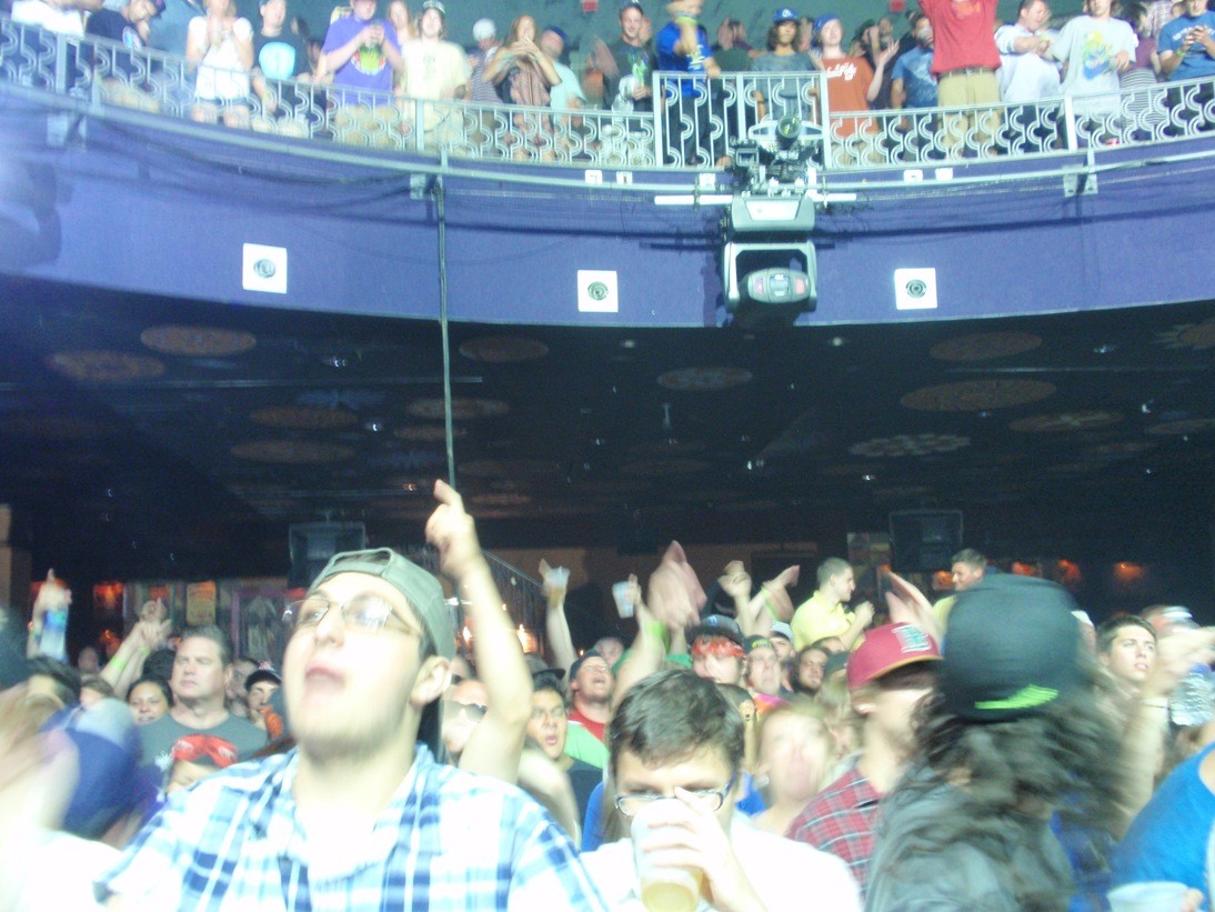 After some time off, the long awaited Summer 2012 Disco Biscuits tour is finally here, and over already. It was a very small tour (3 shows plus a festival) that culminated at Camp Bisco this past weekend with a series of talented artists like: Bassnectar, Skrillex, Amon Tobin, and Crystal Castles. The only show I attended was the House of Blues show in Atlantic City, NJ, almost a hometown show for the Philly boys.Seeing a show in Atlantic City is usually a great time due to the many things there are to do before and after the concert. I have seen plenty shows in AC, but this struggling gambling town really showed me why they are having such a hard time drawing gamblers and concert goers. First off, I always park at the Showboat Casino, where the parking is usually free. They have recently increased that to $5, and the worst part about it was as I literally just put my car into park, and a rude security guard yelled over to another car nearby and me, “Everyone get out of your cars and get to the concert!” Obviously they were cracking down on tailgaters, but we literally just put the car in park, furthermore, how did he know that both cars were there for the concert? Security was extremely hype, as my old Philly high school students would say. That irritability continued all night as Biscuit fans were treated as second class citizens around the casino the entire night.When I arrived, there were not too many people in the venue yet. I bought an extremely overpriced drink in a tiny plastic cup and then got ready for the electro-club opening band called Damn Right!, who are also currently from Philadelphia. This passionate duo grew out of a residency at the 8×10 Club in Baltimore, where their residency attracted a small following. They are gaining some momentum now playing festivals and touring small clubs. At the end of their opening set, they brought up Aron Magner, keyboardist from the Disco Biscuits to jam with them on a couple tunes, which got the very small crowd going a bit.The venue was still filling in as security was religiously kicking people out of the bathrooms now for “being in there too long.” This was the worst customer service at a casino/venue that I have ever witnessed. They need to take more notes from Las Vegas. Before long though, the Biscuits took the stage and opened with an old classic “M.E.M.P.H.I.S.”  It was a very mellow and spacey start, and just then they appropriately went into Pink Floyd‘s “Run Like Hell.” I say appropriately because right from the start of the show the band members did not seem to be there normal, happy, animated selves. Guitarist, Jon Gutwillig, was on the far right of the stage in his dark shades and Daft Punk shirt, as the rest of the band was as far away from him as possible. It was a weird energy on this night, as the first set started to take off with an inverted “Confrontation” into an unfinished “Shem-Rah Boo.” I really enjoy Marc Brownstein‘s bass slapping in this song. I will not use “dropping bombs” to describe his playing because he recently posted his frustration for the lack of creativity in reviews as writers try to describe their music. They weaved this jam into the song “Bomb” though and closed the first set with a dyslexic “Crystal Ball.”As the crowd dispersed into the casino, bar, or the boardwalk for the set break taking in all of the strict rules of where we were allowed to go and not go, the venue looked fuller, but not the usual sold out full show. I thought it would be packed due to the short summer tour and increasingly fewer shows announced in the band’s future.The second set started with a nice “Above the Waves,” “Magellan,” “House Dog Party Favor.” This run of songs is always beautiful and adventurous to hear, but the dance party was subdued quite a bit from its normal continual flow of dance heavy songs. Half way through the set they went back into the dyslexic “Crystal Ball, and took us to “The Great Abyss.” There was a definite sea shore feel to the show, which was great to hear as I happened to be on vacation at the beach for a couple of weeks. The encore was “Wet,” which also fit well with the theme of songs. This second set closed with the end of “Run Like Hell,” and for the first time, I sensed a disconnect from this band that I have been seeing since 1997. The only shows announced for the future are City Bisco, which will be like a mini festival in October in Philadelphia, and their traditional Mayan Holidaze in Mexico.