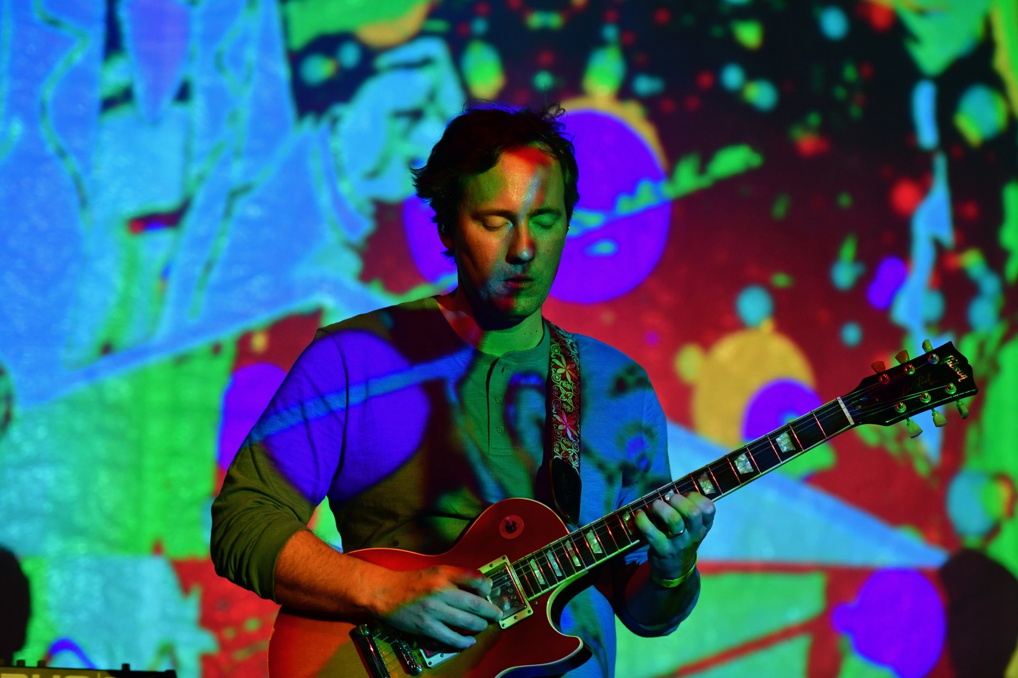 The subtly placed and flawlessly executed rendition of Talking Heads’ “Slippery People” followed, striking joy into a well-versed musical audience. From the bottom to the top, the band climbed, with bassist Kevin MacKinnon holding down the low end of the vibrations and drummer Jeremy Deitz locking in the rhythm section.