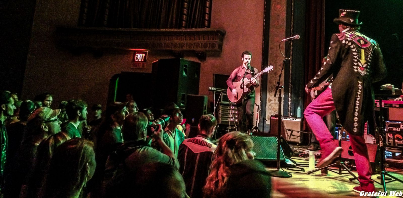It’s near impossible to describe what happened on stage, but it went something like this—Matt, waving the band on enthusiastically, in top hat and patterned tails, scribbles instructions on a mini dry-erase board, showing them to the players. (And some to the crowd—words like “NOW” and “YEAH!”) The band takes his queues, periodically raising the energy to mountainous highs, and stepping back so single members can shine.