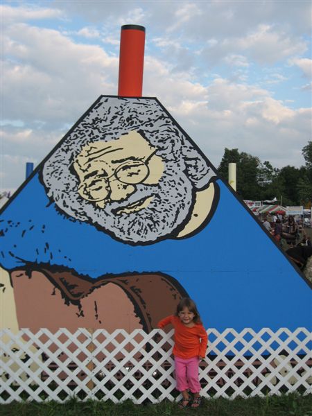 Wavy Gravy, an original Merry Prankster affiliate, returns each year to emcee the fest, usually garbed in electric koolaid colors with clown-like overtones. Wavy reminds us that this is a family-friendly event by inviting pre-adolescents to offer commentary via microphone, many of whom accept the invitation with whimsical musings about the Tooth Fairy’s gift from the night before. His brand of acerbic political wit and down-home authenticity causes broad smiles across generations.