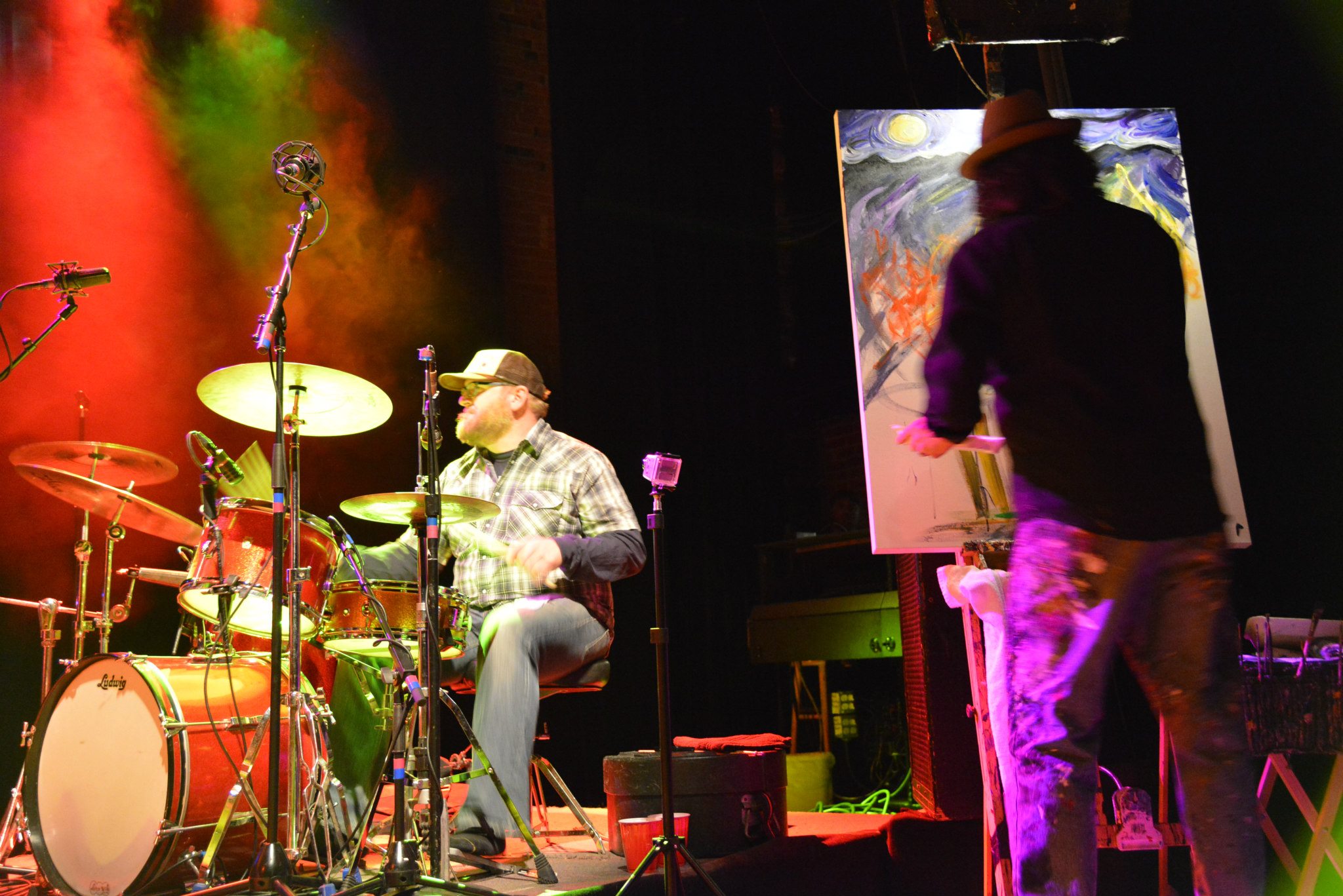 Lending a helping hand to Grant Farm at the Boulder Theater was String Cheese Bass player Keith Moseley, who originally played with Grant before former Hot Soup bassist Adrian Engfer joined full time. Keith played on a number of songs during the show, with the two bass players swapping out acoustic guitars when one or the other had a knack for a certain song. In addition, Gipsy Moon and Frog’s Gone Fishing were on hand to open up the evening, and legendary Colorado artist Scramble Campbell was set up on stage all night slapping paint to canvas as the bands burned through their sets.