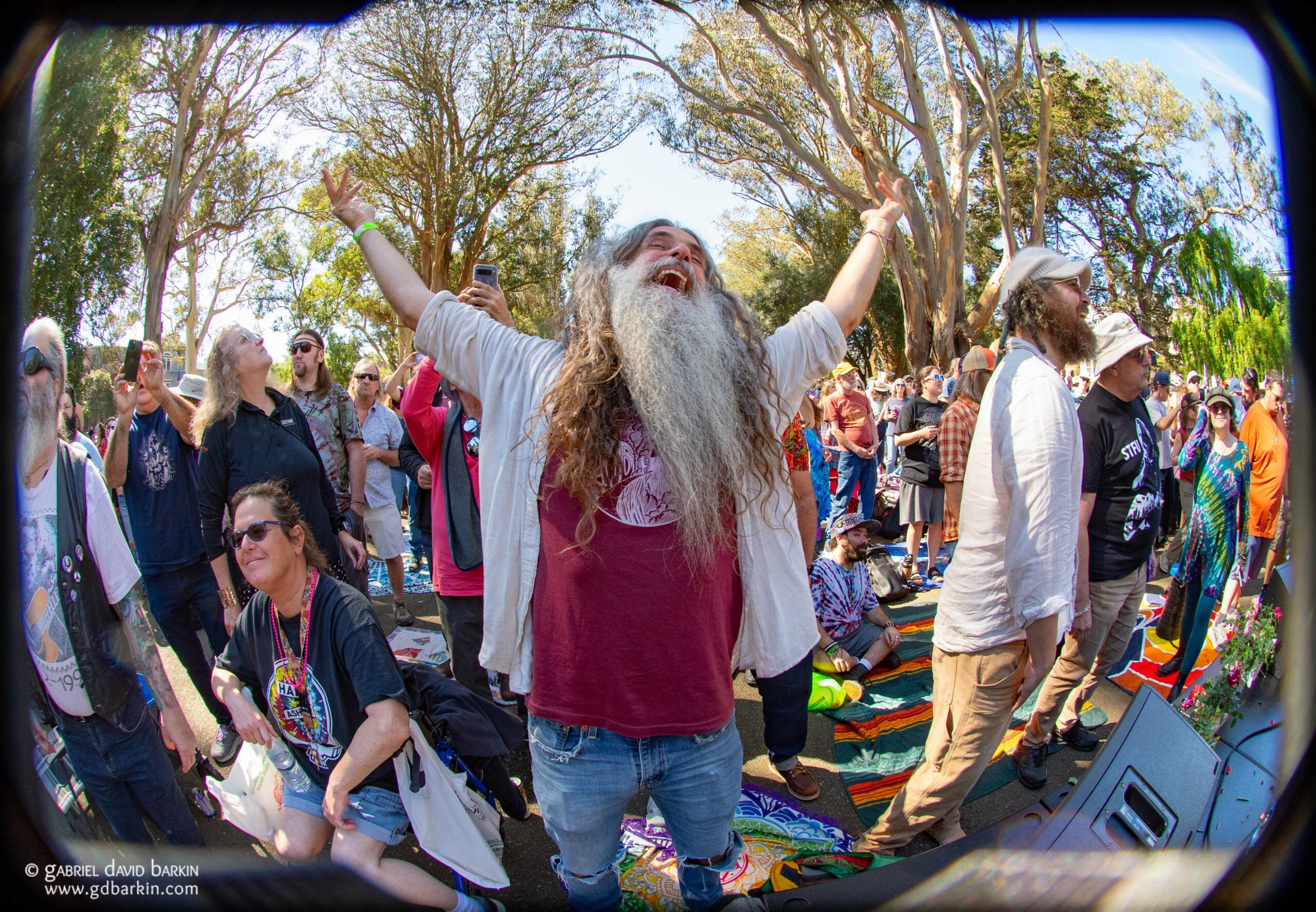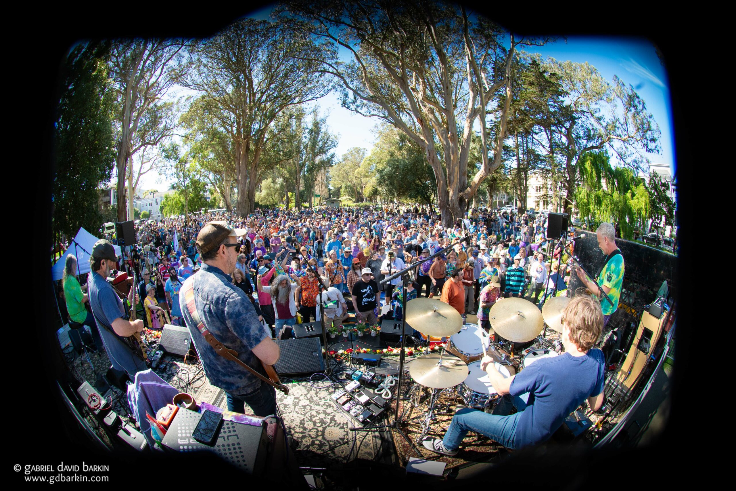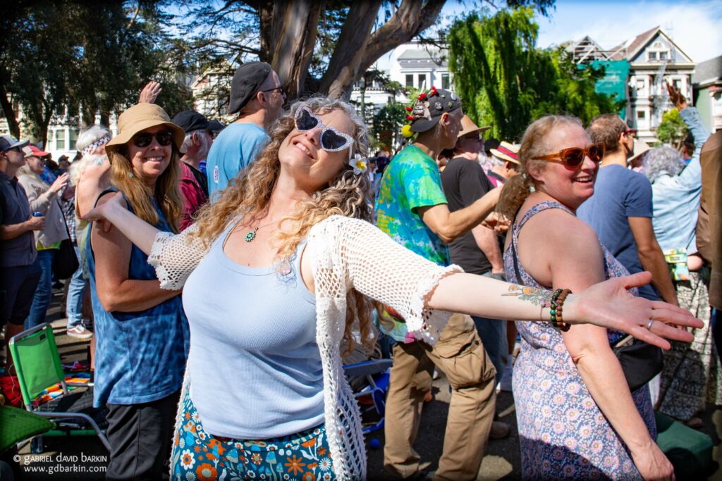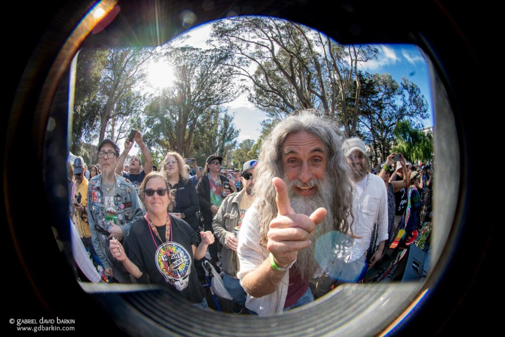 Official estimates* pegged the attendance at about 5,000 people. (* Full disclosure: I declared myself an “official” for this estimate. Other results may vary.) Roughly three-fourths of the crowd looked like they came specifically for the Dead thing, and the rest of the audience may have just stumbled by when they heard the music and saw the crowd, perhaps while taking their kids to the nearby playground or shopping for hippie couture two blocks away on Haight Street.