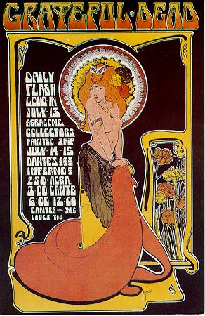 BM: The art of the turn of the century is my greatest love. In part, I saw posters as a way to turn people on to Mucha, to Art Nouveau. I mixed the style with psychedelic lettering, creating a new mixture.