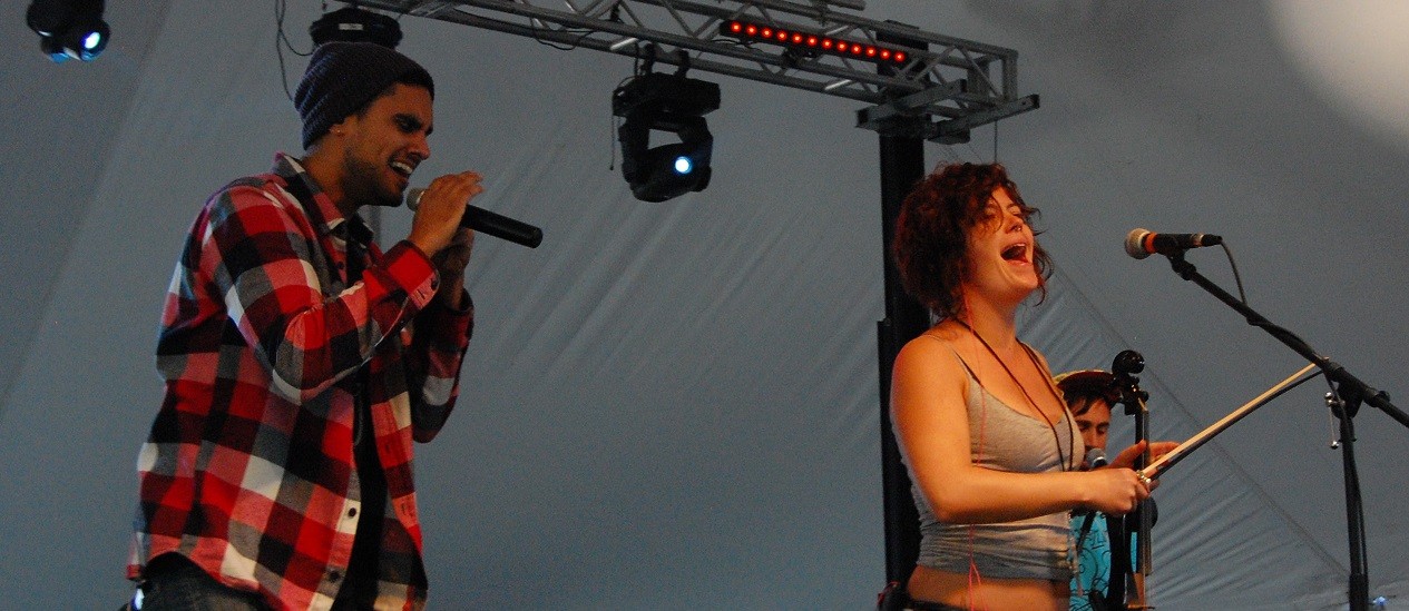 Next, I knew I had to make sure to catch Delhi 2 Dublin. I love that they combine traditional folk sounds from different cultures – mainly India and Ireland, as the band’s name suggests – with modern electronic sounds. Their opening song was one of their newer hits, which featured a lot more of the electronic, dubby influence. The crowd was moving slowly but wasn’t matching the energy the band was putting out. That changed when they launched into some of the more popular songs from their first, self-titled album, which featured more of their traditional sounds and a highlighted the band’s fiddler, Sara Fitzpatrick. Overall, the crowd appreciated the less electronic-driven songs more than their newer, drum and bass influenced sounds, and demonstrated this by cheering and dancing.