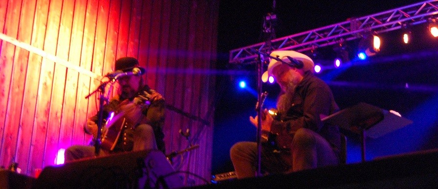 While I meant to stay up all night and catch some of Yonder’s set and a bit of Dirtfoot, Les Claypool’s Due de Twang was the end of the night for me. But what a fantastic way to end the night! Les Claypool (most famous for Primus) is arguably one of the best bass players on the planet, and between the groovy sounds of his bass and bandmate Brian Kehoe’s guitar, the entire crowd was cheering and dancing and stomping around despite the biting cold of the night air. Les Claypool also turns out to be a really funny guy, cracking jokes about his music, the type of people who love his music, and the relation of psychedelic jokes to both. There were people spinning LED hula hoops and fire circles, and there were giant light-up puppets dancing through the crowd. Les made a joke about how he’s glad he doesn’t do as many drugs anymore or he might be a little bit weirded out by the fact that there was a giant electric octopus and a six-foot dancing piece of bacon in front of him; Kehoe– who Claypool told us he had known since high school – joked back that when you’re Les Claypool you don’t need psychedelic drugs anymore. After a few good laughs, the proceeded to play a cover of The Bee Gees’, “Stayin’ Alive,” and just went on jamming us into groovy oblivion from there.