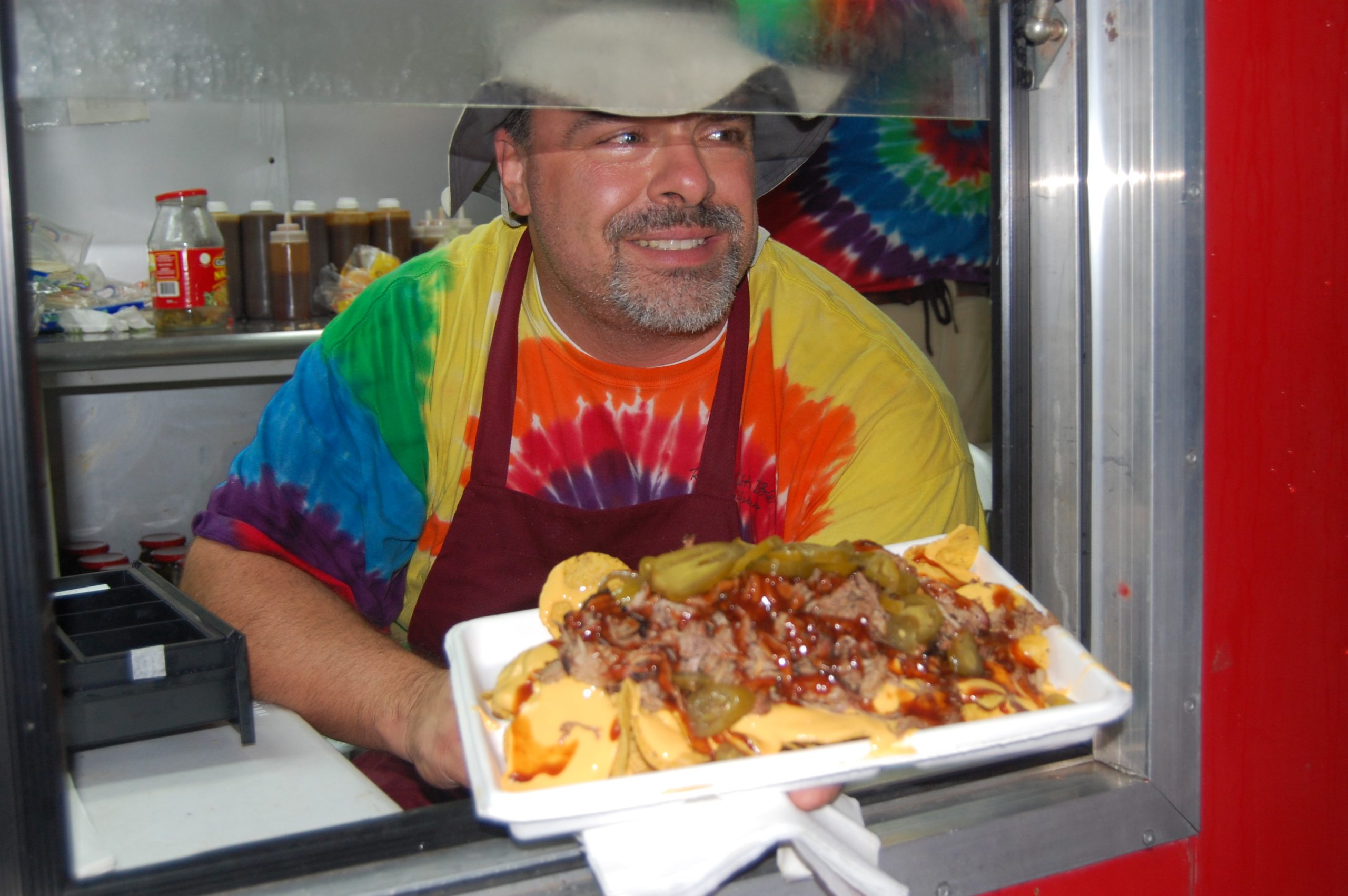 By this time in the night it had been raining most of the day. Not great, but not bad either. The mud is manageable and the temperature is chilly but not unbearable. We settled into Main Stage at our spot for Yonder Mountain String Band. I’ve seen them a handful of times, and this show was no exception. I was expecting a lot of special appearances but we didn’t get any for this set. Guess I’ll go to the Saturday show too! As usual, the lights were amazing. And the songs impeccable. One of my friends said “It sounds like they’ve been prepping for this for a year.” Another said of the banjo, “He was going balls-to-the-wall all night.” How could you not have a great time at this show!? They played a Dylan cover, and a few I noticed as covers but couldn’t place. These guys are masterful performers. They have been playing for so long a night on stage seems as simple as sleeping. The band voiced their gratitude to Tedeschi Trucks Band coming to play – they had a dream, the band said, and it came true. In the middle of the set YMSB played a song written for one of the members’ future daughters. It was beautiful and incredibly heartfelt. We closed down the set and left for our lifeblood…BBQ NACHOS.