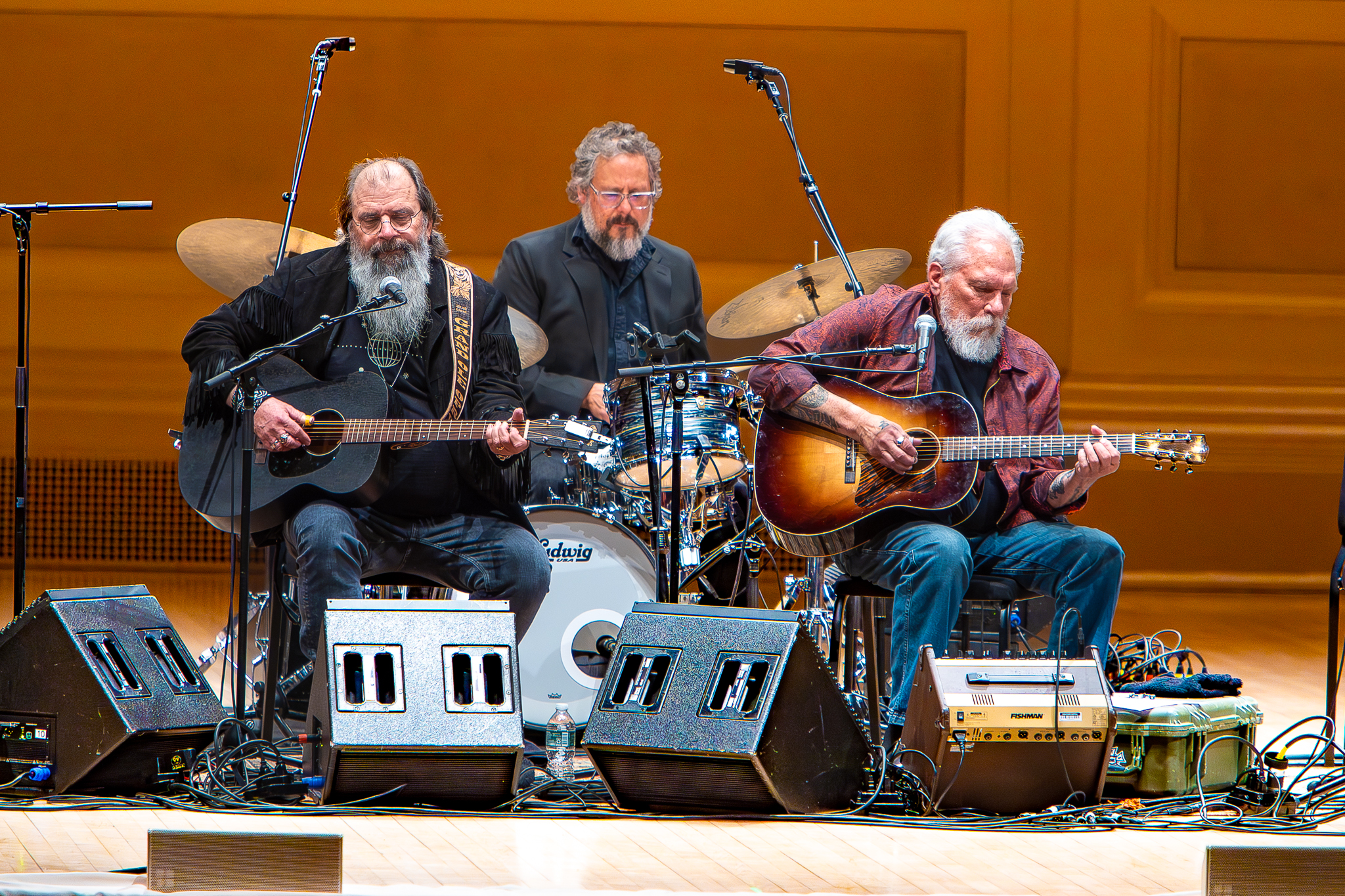 Justin Guip and Ross Garren formed the core backing ensemble for much of the performance, while Larry Campbell—switching between violin, guitar, and mandolin—added texture and depth across the evening. Teresa Williams’ vocals elevated select arrangements, while Steve Earle’s appearances added a powerful presence to songs such as “Hometown Blues” and Townes Van Zandt’s “Brand New Companion.” Later in the show, G.E. Smith joined for a spirited trio with Jorma, delivering classic blues pieces including “Uncle Sam Blues” and “Death Don’t Have No Mercy.”