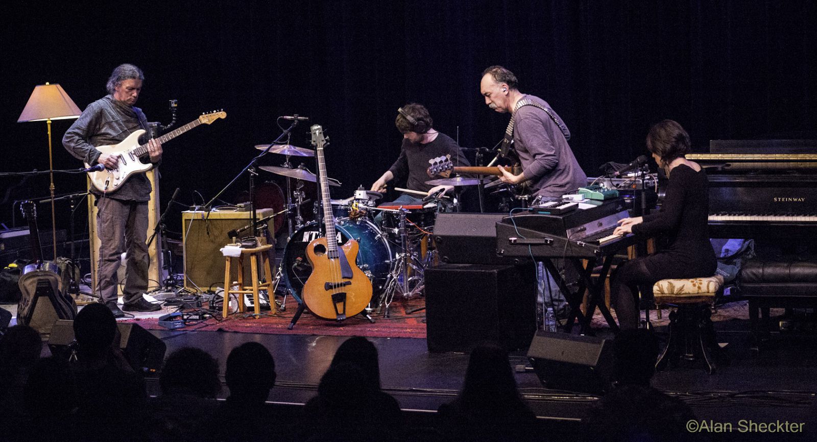 There were two decidedly different facets to the show, which intertwined nicely into a pleasing, always interesting, performance. First, there were new atmospheric instrumental offerings from, “Last Danger of Frost.” Second was a trio of offerings fronted by the charismatic Mendelson that, while accompanied by Kimock’s ethereal instrumental passages, ventured into, dare I say, folk-pop territory. These selections includes new songs she co-wrote with Kimock – “Careless Love” and the very catchy “Satellite City,” as well as a cover of Bruce Cockburn’s “Waiting for a Miracle.” With a voice reminiscent of Shawn Colvin or Norah Jones, Mendelson’s cool, captivating vibe, and smooth delivery won over the crowd while providing a well-balanced counterpoint to some of the evening’s more entrancing content.