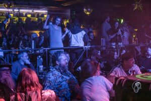 WOLF! cover “Pork n Slaw” came after “Mimi Digs It” and I started to wonder – maybe capitalism isn’t the villain of the story after all. Maybe it’s just the cover charge for connection. This time last year, Garcia’s was brand new. The spring storms rerouted LaMP’s merchandise to gawd knows where. Long story short, the merch never arrived, so the band DIY’d t-shirts. They purchased materials from a going-out-of-business Joanne’s Fabrics, using their hotel hair dryers to get it done in time for the show. Folks flocked to buy their one-of-a-kind mementos from the show at this new Chicago club.
