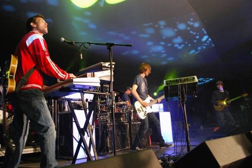 The fantastic five from Philly wasted no time with a mellow first set. Instead the boys got right down to business with a jam into Nematode, a song off of their first album Germination. When it first came out, I used to substitute this album for breakfast; there is nothing like a little Lotus in the a.m., unless of course it is some live Lotus at night. Throughout the night the band managed to play songs off of all of their albums, while hitting the crowd with a few new tracks and an unexpected cover. Drummer Steve Clemens was rocking his sunglasses at night, perhaps to shade him just a little from the bands stellar light show. Their latest addition to their already incredible stage presence consists of a number of boxes on stage with panels that light up, illuminating the band in color while they do what comes naturally – jam.