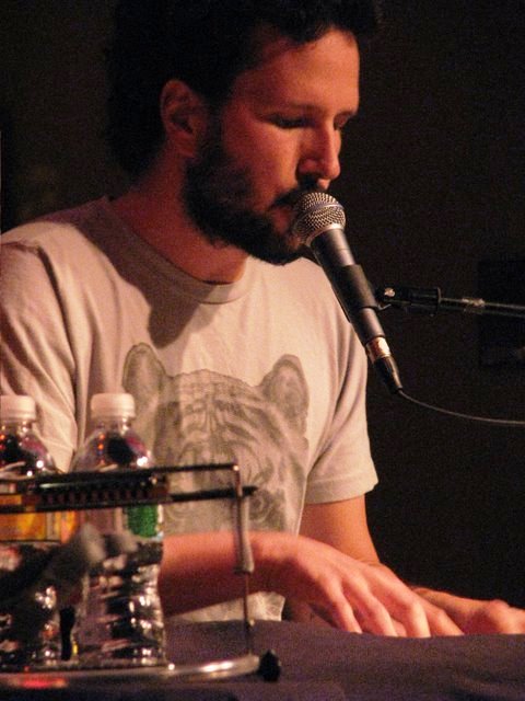 Zach Gill is a ham. I have always known this from watching him on stage with his most common stage mates, Animal Liberation Orchestra. Yet, I never knew before Sunday night how much lightheartedness he feels when he is onstage. I suppose as one of four, as is the case with ALO, he has a role. Albeit, he also leads that quartet, but he is only a functioning part of the whole. Last night, he was the machine, a hand buzzer. Zach took the stage amidst swirling sounds produced by his miniature megaphone that looked to have been purchased at KB Toys- full light-up bell included. The crowd was not sure what to make of Zach and I quickly realized that ALO’s reputation did not precede him here at The Higher Ground. Laughter and head bobbing to see what was happening on stage spread through the half full venue as Zach abandoned his novelty toy for the piano.