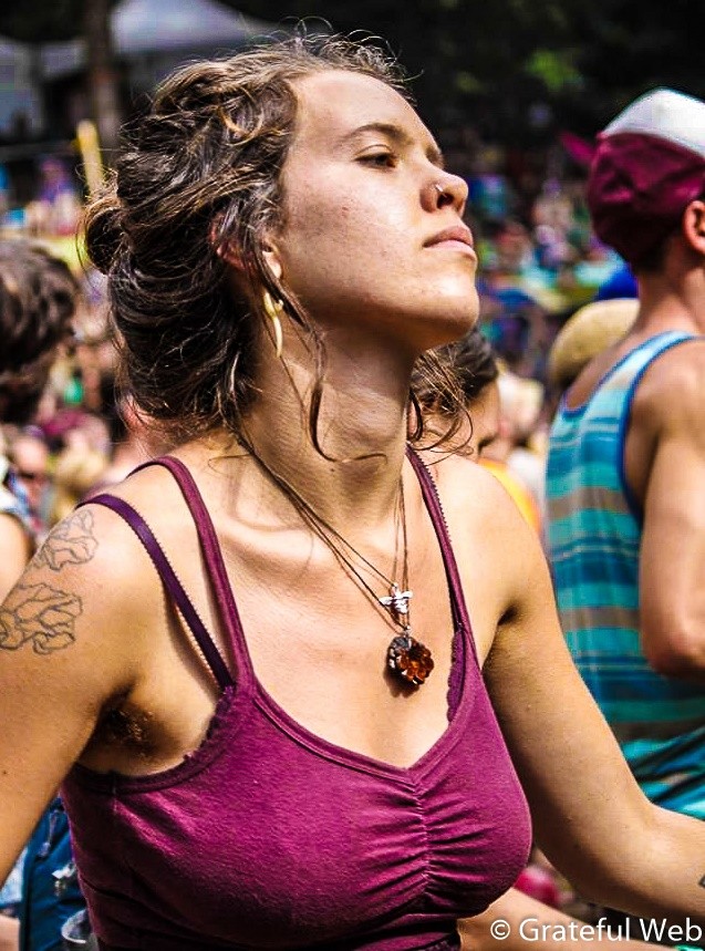 At this point it was time for Sunday Yonder Mountain String Band, which is always a nice treat. Daytime Yonder always seems more twangy and laid back to me. When the sun goes down it’s party time, but while it’s still up, we enjoy, jig, and spin around to the grassy sound that surrounds us. Yonder sailed through their first set making everyone stomp and swing in the most perfect of weather. Then, during their set break, the annual St. Baldrick’s Donation Collection took place. This is when the Sunday theme, Frilly for Lilly all comes together and people have the opportunity to donate their hair for cancer patients. And as Gipsy Moon played the Main Stage during set break, a woman named Peggy Davis did just that.