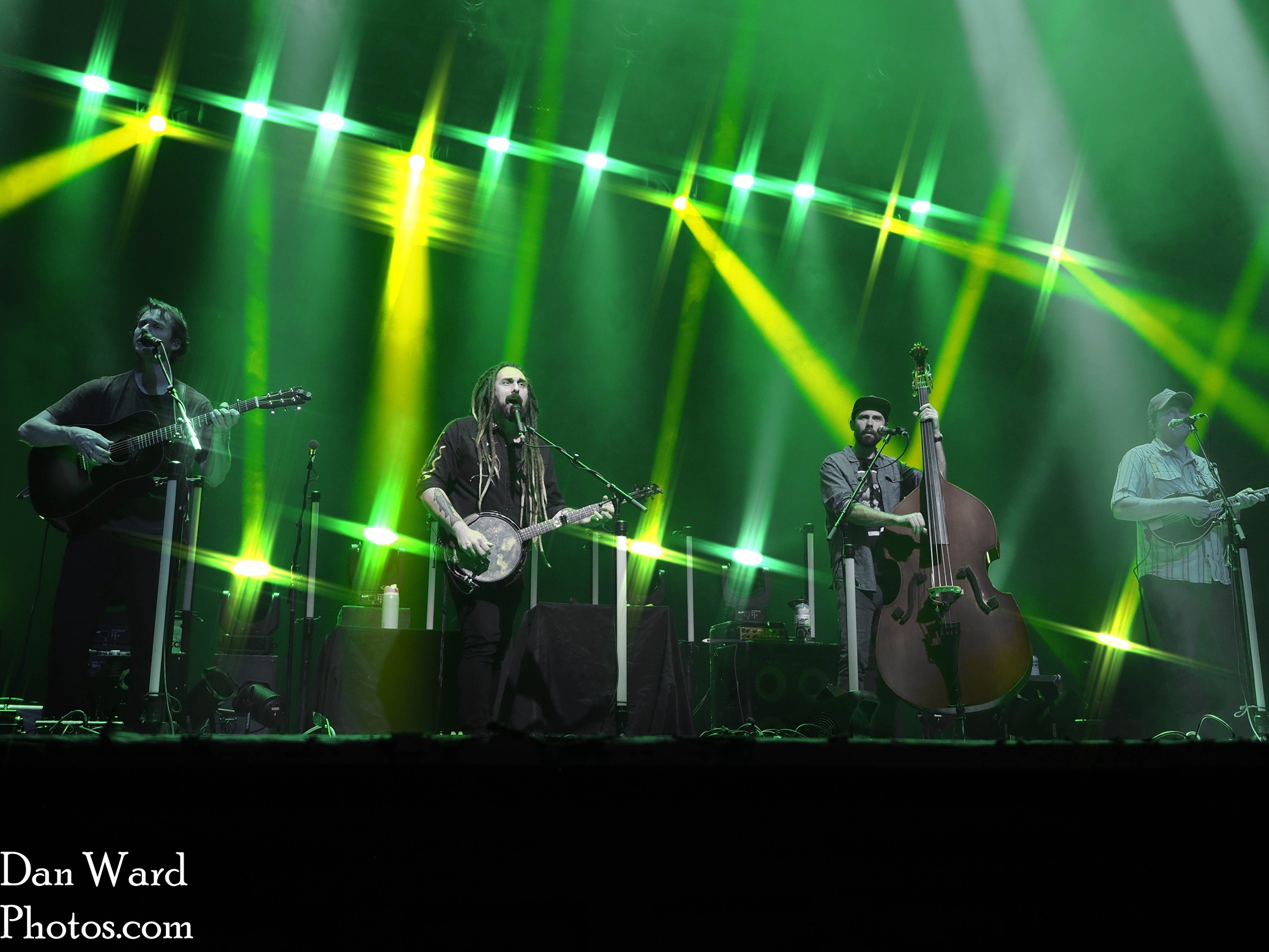 The room buzzes during set change—half stunned from TCB, half thrumming with anticipation. A low roar rises as Max Davies (guitar), Torrin Daniels (banjo/vocals), Joe Funk (bass), and Shawn Swain (mandolin) take the stage. They open with “Shadows,” each musician soloing in turn—like a roll call of talent. The din becomes a full-body singalong.