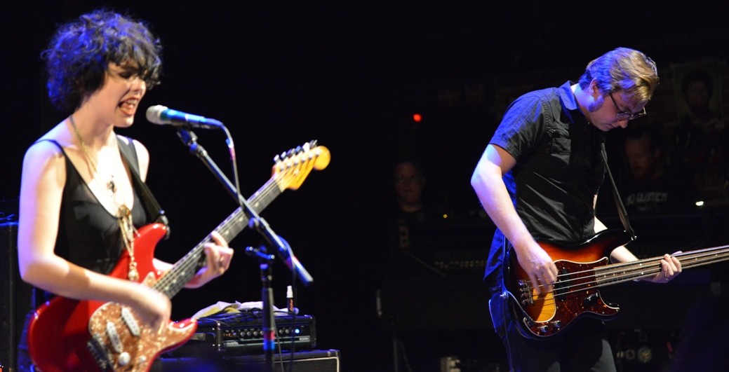 Sometimes utter cluelessness has its rewards. I’ve never been to Disneyland, but I imagine kids approach it the same way I approached the show – wide open, ready to be amazed by anything and everything. Fortified by a tall pour from George’s, I made my way past the vending area and rounded the bend to the theater proper, steeled and ready to hurtle in to the fray with a sweating, pumping, horde of… southern gents in crisp plaid shirts??? Well, I never. The scene was pure Sunday barbecue, southern style: friendly folks, blonde kids, clean-cut guys on dates with smiling gals. Disarmed by the scrubbed, down-homeyness of it all I relaxed, settled in, and turned to the opening band, Those Darlins, for some good, clean fun.