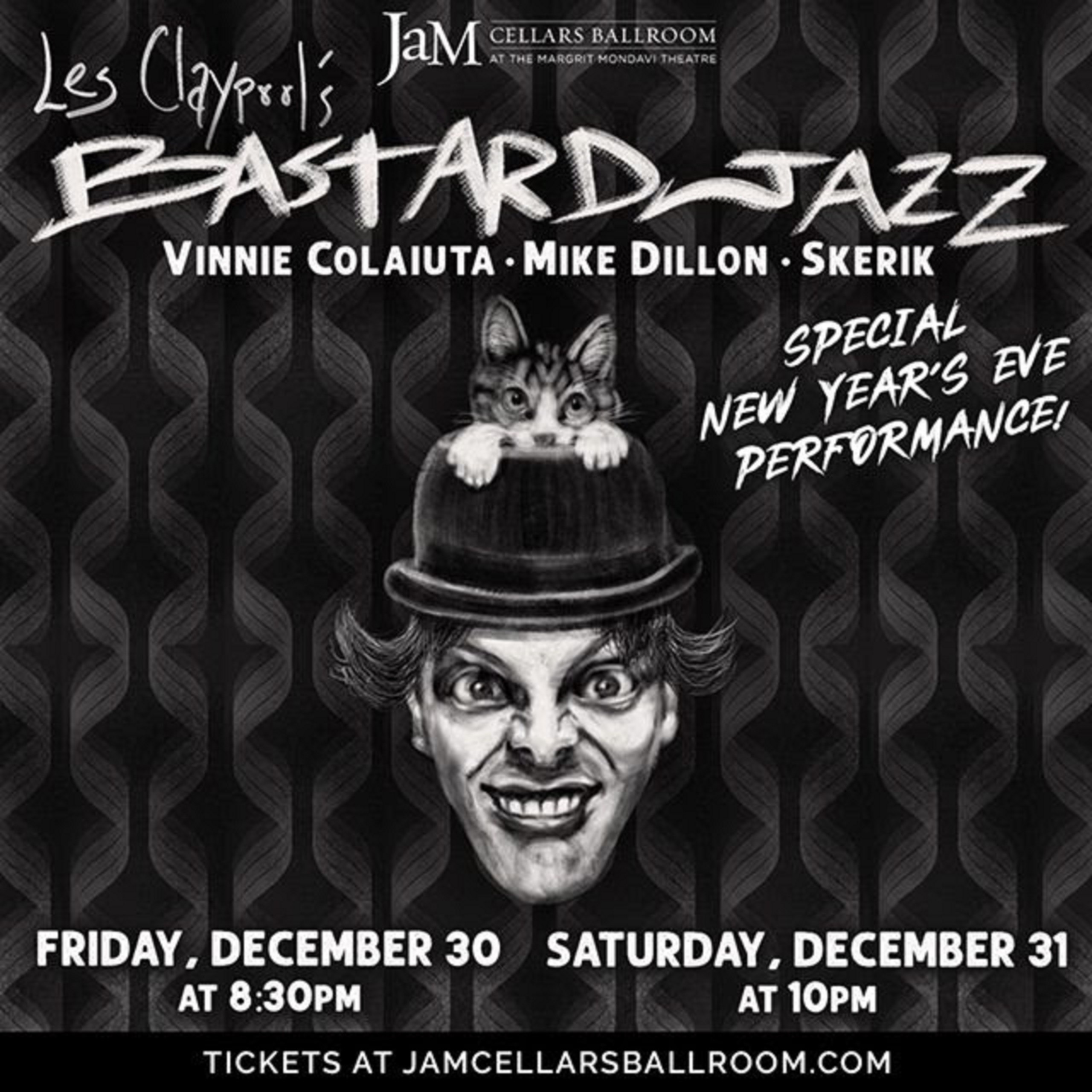 Les Claypool’s Bastard Jazz will ring in the New Year on December 30 & 31 at JaM Cellars Ballroom in Napa, CA. Joining Les, Skerik, and Mike Dillon is special guest Vinnie Colaiuta on drums. Vinnie has toured and recorded with many artists, including Frank Zappa, having played drums on the iconic Joe’s Garage album.… Continue reading Ring in 2023 with Les Claypool’s Bastard Jazz at JaM Cellars Napa