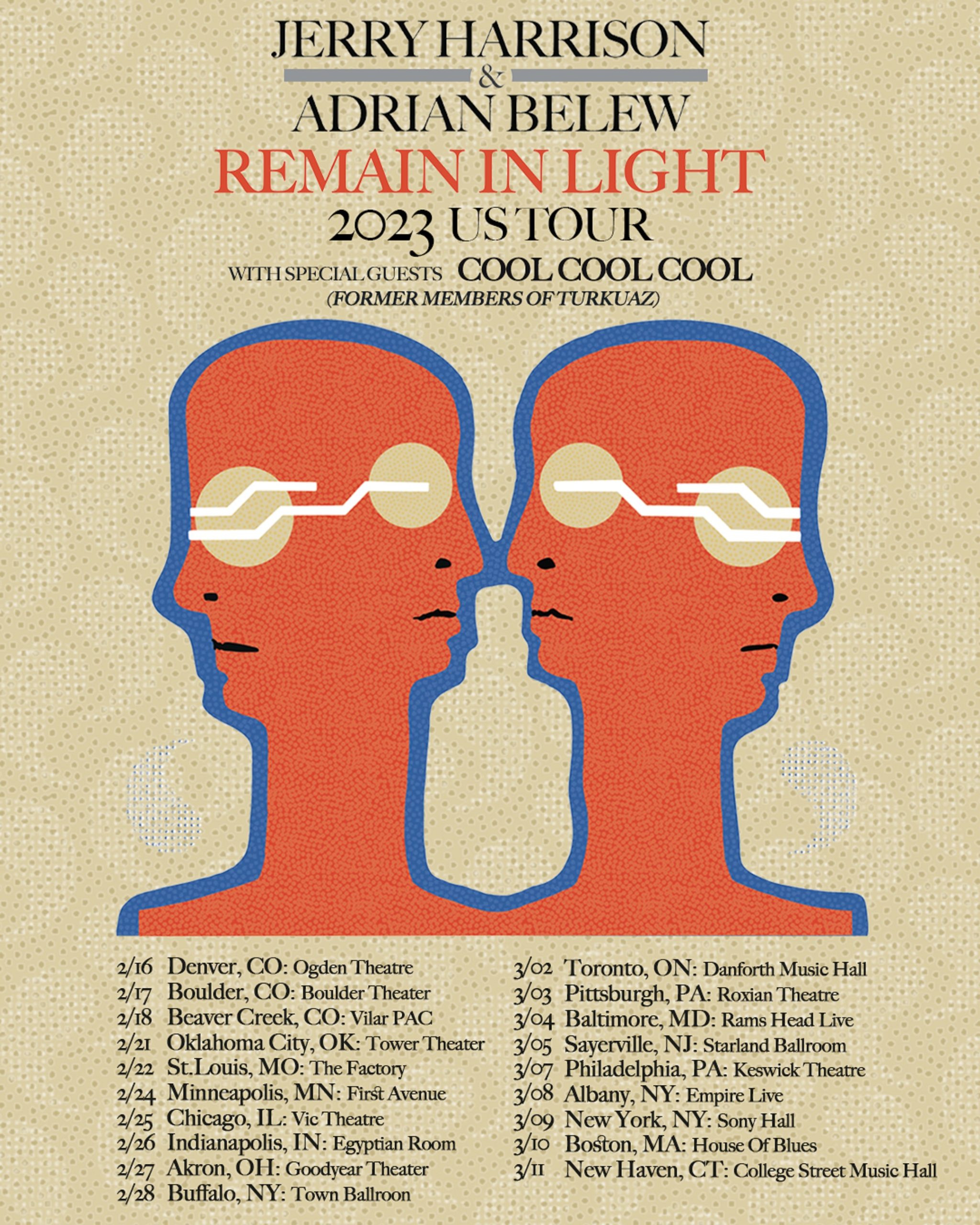 On the heels of their performance at LA’s The Wiltern last month, original Talking Heads member Jerry Harrison and noted touring member Adrian Belew have announced that they will bring their popular ‘Remain In Light’ concert on the road this winter, in celebration of the band’s iconic 1980 record. Kicking off in Denver on February… Continue reading Talking Heads’ Jerry Harrison, Adrian Belew Announce ‘Remain In Light’ Tour