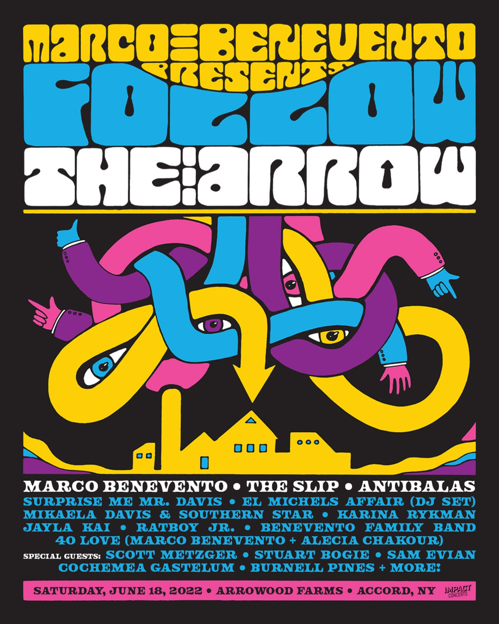 Marco Benevento announces FOLLOW THE ARROW, a one day festival presented by the Woodstock, NY-based artist to be held Saturday, June 18 at Arrowood Farms in Accord, NY. Benevento will be joined by The Slip, Antibalas, El Michels Affair (DJ set), Mikaela Davis & Southern Star, Karina Rykman, Jayla Kai and Ratboy Jr. A handful… Continue reading Marco Benevento Presents Follow The Arrow w/ Antibalas, The Slip, Mikaela Davis & More On 6/18 at Arrowood Farms in Accord, NY