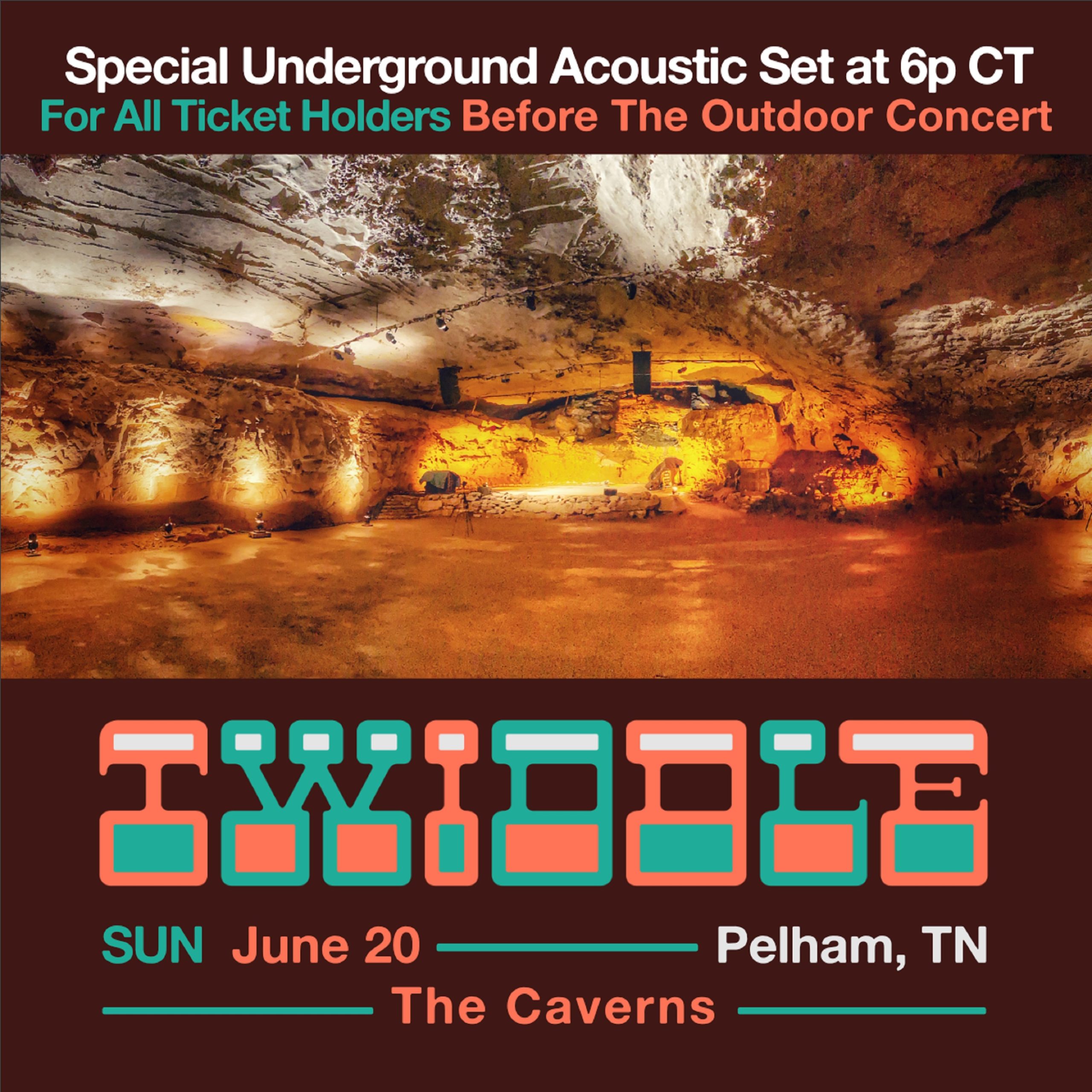 The Caverns and Twiddle announced today that the band will be the first one to officially perform in the venue’s subterranean concert hall since the COVID-19 pandemic forced The Caverns to close the doors of its underground venue to live audiences in March of 2020. Underground and under the stars, Sunday, June 20th promises to… Continue reading The Caverns Officially Reopens Its Subterranean Concert Hall with Twiddle, June 20th