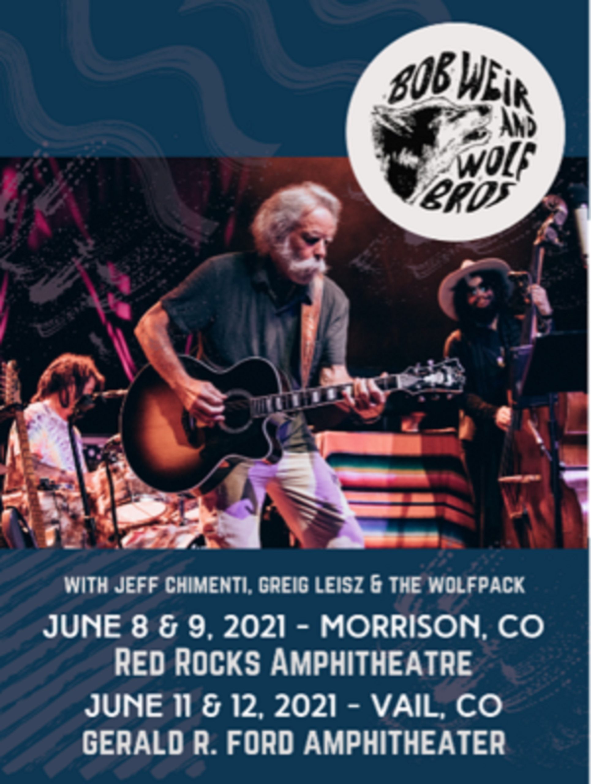 Bob Weir and Wolf Bros are excited to confirm two nights at Colorado’s iconic Red Rocks Amphitheatre, June 8 and 9, followed by two nights at the Gerald R. Ford Amphitheater in Vail, June 11 and 12. The dates mark their first live shows since Chicago in March 2020. Tickets go on sale April 30… Continue reading Bob Weir and Wolf Bros confirm Red Rocks Amphitheatre + Vail CO dates