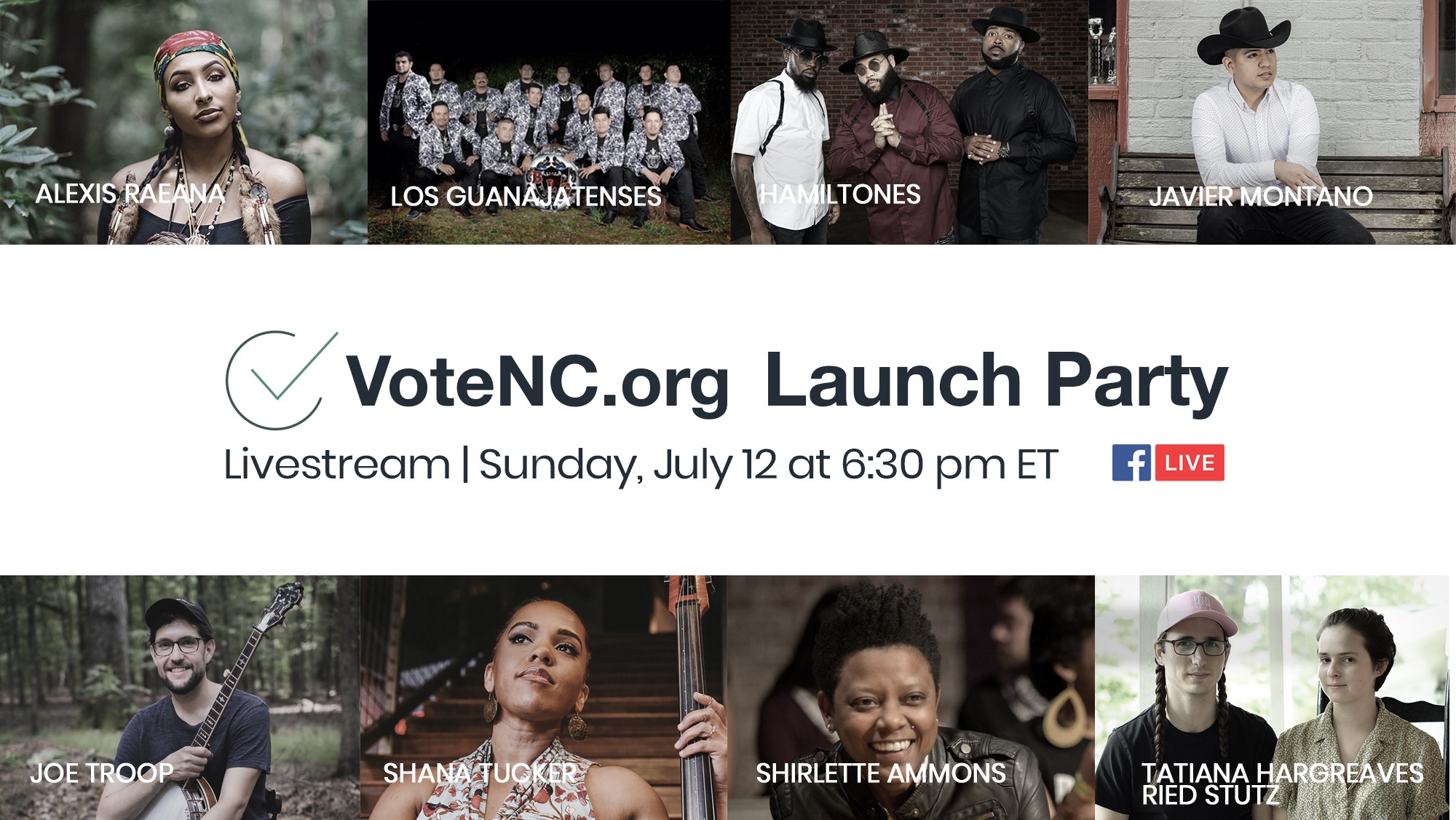 At 6:30 PM EST on Sunday, July 12th, Down Home NC, Equality NC, Mijente, Poder NC, and RuralOrganizing.org will host a digital concert to launch a voter turnout campaign in the battleground state of North Carolina. The online event will be a musical representation of the diverse communities of North Carolina and will feature hosts… Continue reading Diverse Group Of North Carolina Musicians Join Local Progressive Organizations in Launching VoteNC.org