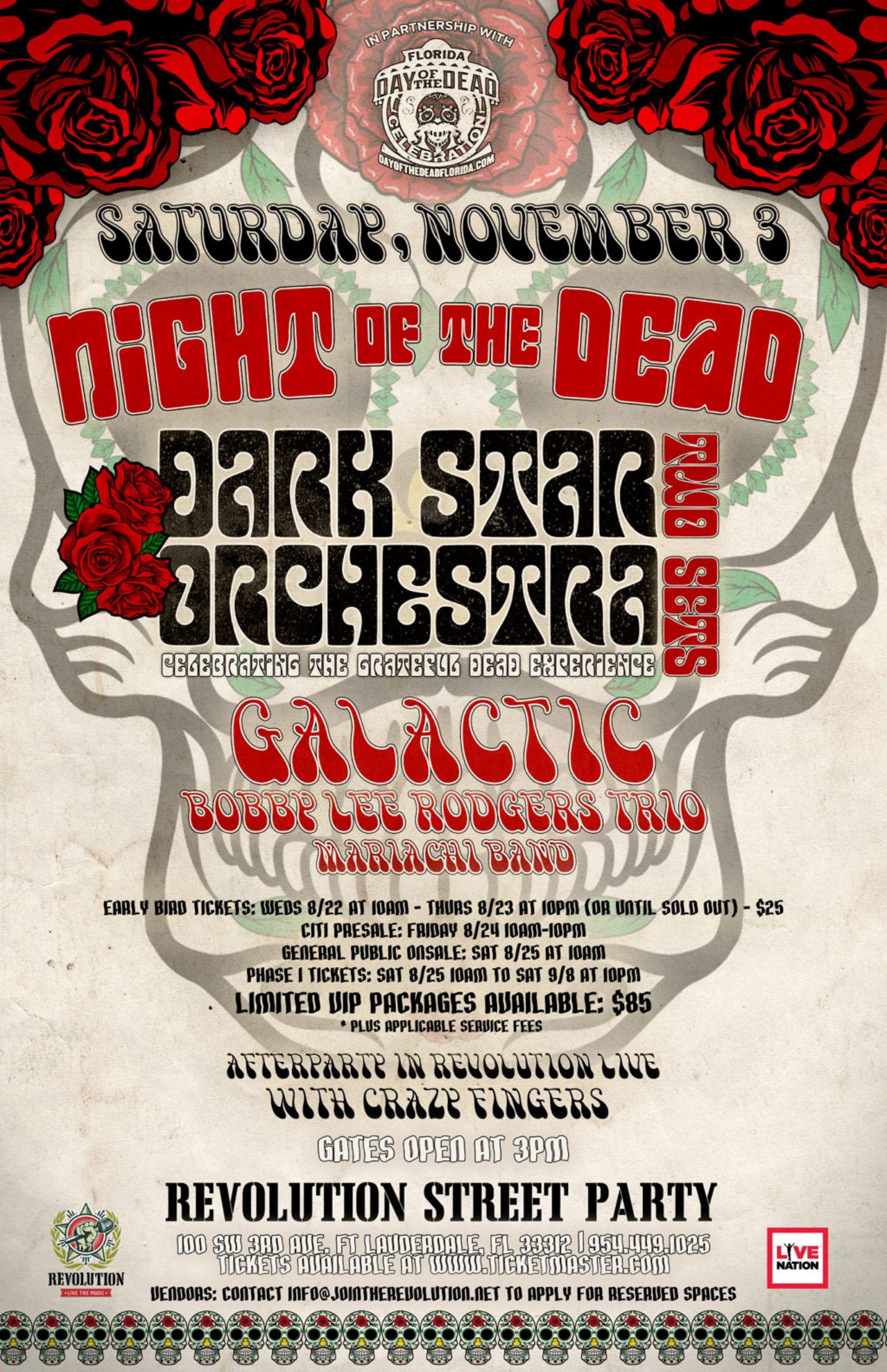 The “Day of the Dead” Celebration believes that on every 2nd of November, the gateway between Mictlan, the ancient Aztec Land of the Dead, and our world opens so we may celebrate with our lost loved ones for one special time of year. Now the Ninth Annual Florida “Day of the Dead” introduces “Night of… Continue reading NIGHT OF THE DEAD @ REVOLUTION LIVE