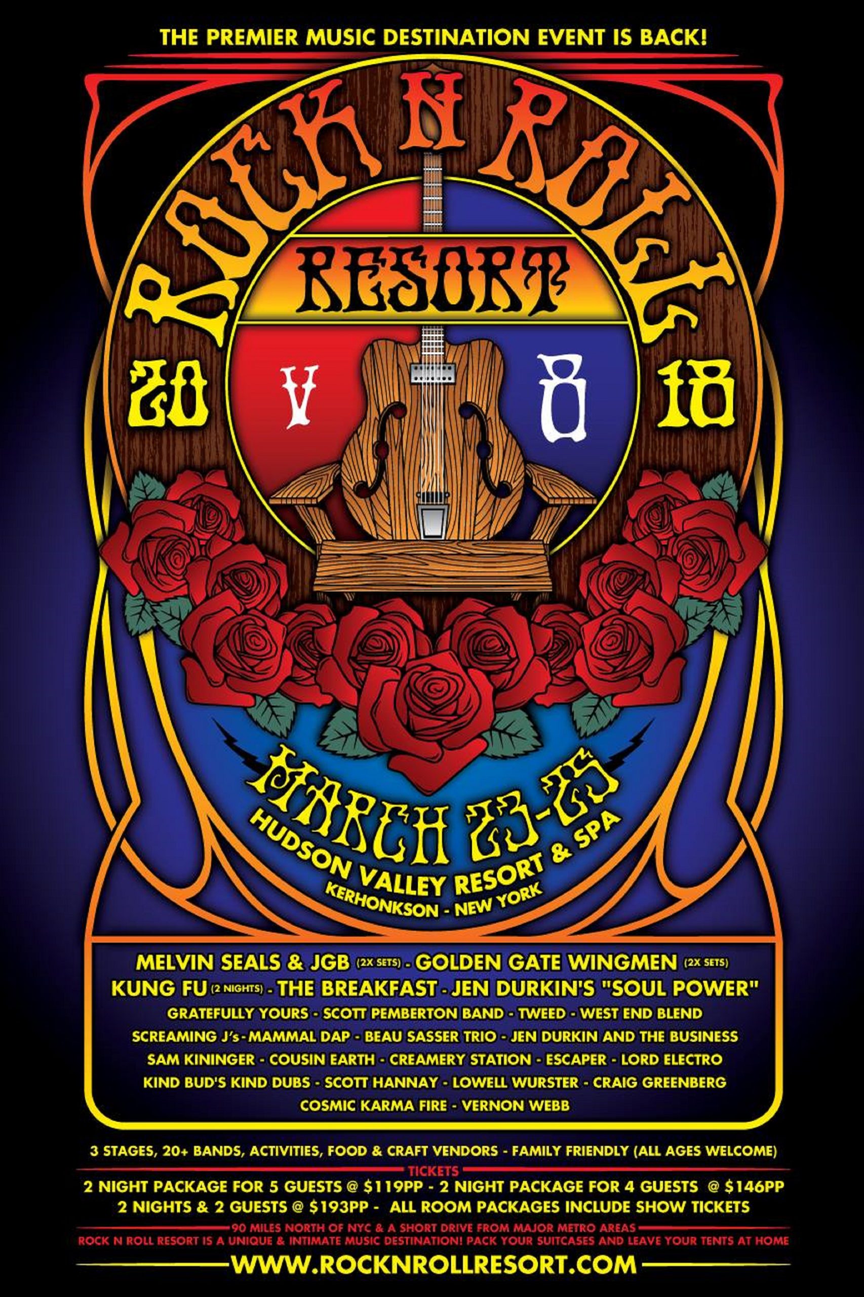 Rock n Roll Resort is back at the Hudson Valley Resort & Spa in Kerhonkson, N.Y. this Friday, March 23rd and going through until Sunday. RRR features multiple stages with dozens of musical acts, art, vending and activities – all in one weekend, under one roof. Rock n Roll Resort v8: The Grateful Escape features… Continue reading “ROCK N ROLL RESORT v8: THE GRATEFUL ESCAPE” SCHEDULE DROPS