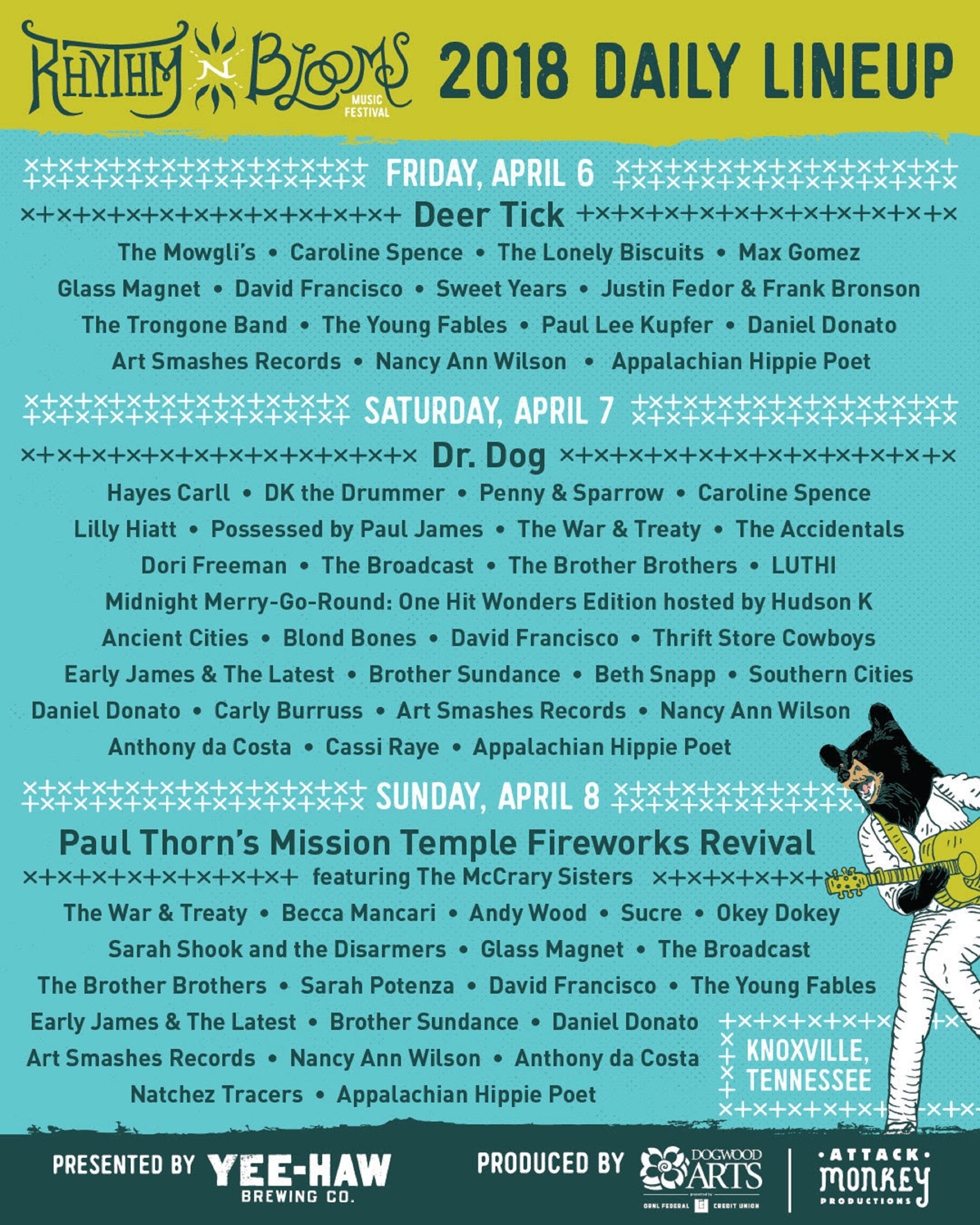 Rhythm N Blooms Music Festival is pleased to announce the daily lineup of artists for its ninth annual music festival. The festival, which takes place in downtown Knoxville on April 6-8th 2018, features a wide variety of national and regional acts ranging from Americana, Country, Alternative, Roots, and Blues. On Friday, over a dozen artists… Continue reading RHYTHM N’ BLOOMS FESTIVAL ANNOUNCES DAILY ARTIST LINEUP