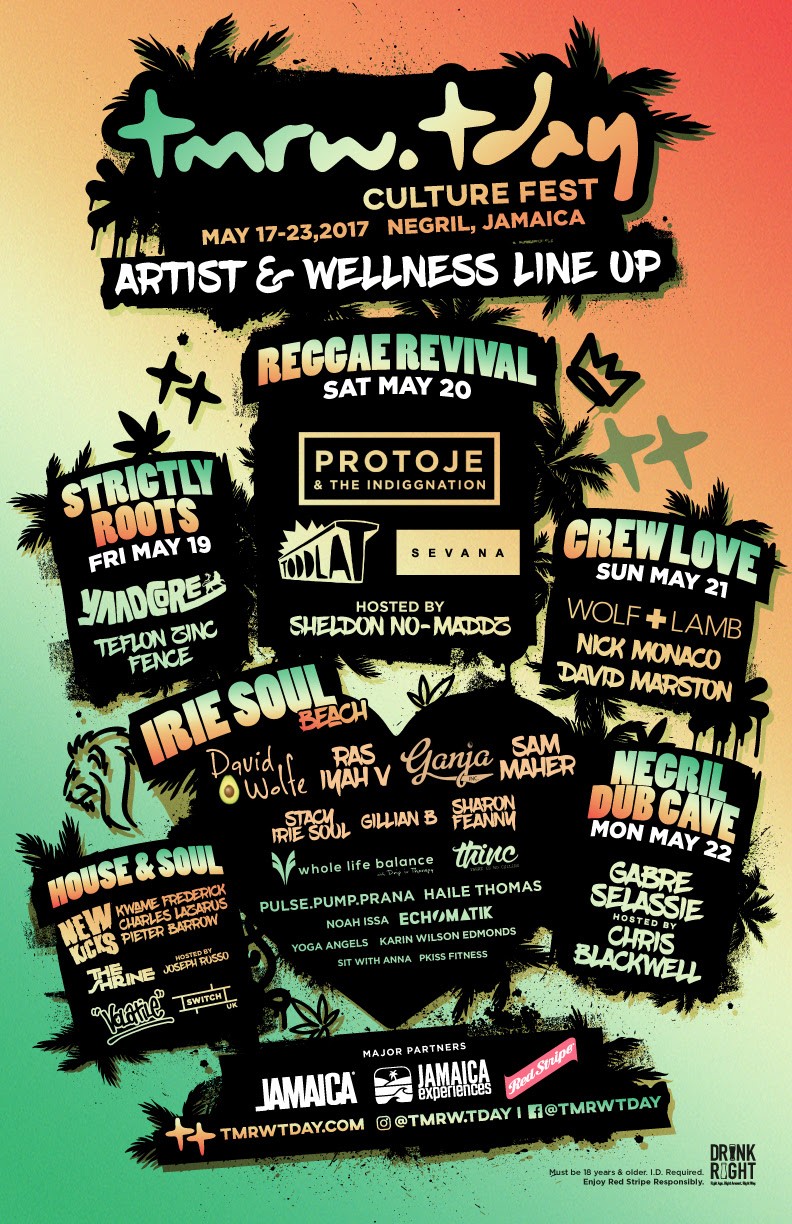 Taking place on the glistening beaches of Negril, Jamaica this May 17-23, Tmrw.Tday Culture Fest forays onto the international festival landscape, with the aim of enlightening those who will voyage into paradise. Inspiring attendees to embark on a weeklong journey into consciousness, conviction and energy work across the grounds of one of the world’s most… Continue reading Jamaica's Tmrw.Tday Culture Festival 2017