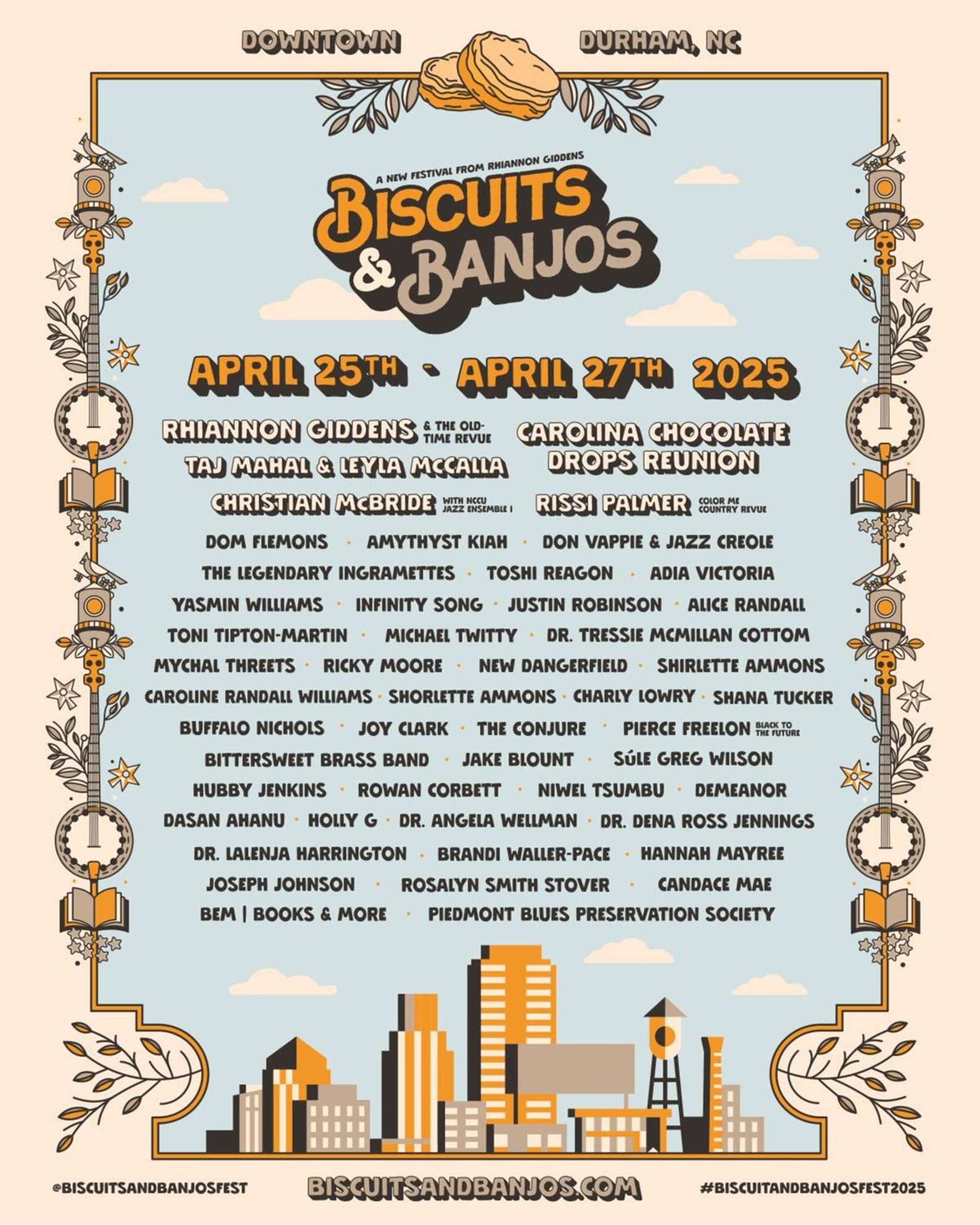 With just weeks to go until the inaugural Biscuits & Banjos Festival, GRAMMY and Pulitzer Prize-winning artist Rhiannon Giddens has revealed several exciting updates for the sold-out three-day event, taking place April 25-27, 2025 across downtown Durham, NC. The festival, curated by Giddens, is a celebration of Black music, art, and culture, bringing together artists,… Continue reading Rhiannon Giddens announces livestream of Carolina Chocolate Drops reunion from Biscuits & Banjos fest
