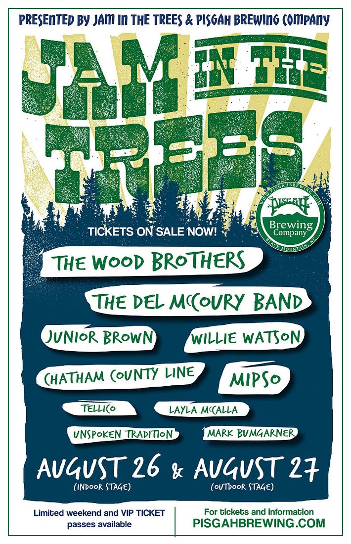 Jam in the Trees kicks off its inaugural event full force with The Wood Brothers, The Del McCoury Band, Junior Brown, and Willie Watson! It takes place at Pisgah Brewing Company in Black Mountain, NC on Friday and Saturday, August 26-27, 2016. The lineup also includes a handful of rising artists from North Carolina including… Continue reading Inaugural Jam In The Trees @ Pisgah Brewing Brewing in August