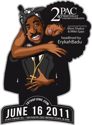 Afeni Shakur and the Tupac Amaru Shakur Foundation announce details for the 2PAC 40th Birthday Celebration Concert, at the Atlanta Symphony Hall in Atlanta, GA, June 16, 2011. Hosted by comedian/actor Mike Epps, this star-studded event will feature a headlining appearance by GRAMMY® award-winning artist Erykah Badu, as well as performances by legendary soul artists… Continue reading TUPAC AMARU SHAKUR FOUNDATION ANNOUNCES “2PAC 40TH BIRTHDAY CELEBRATION”