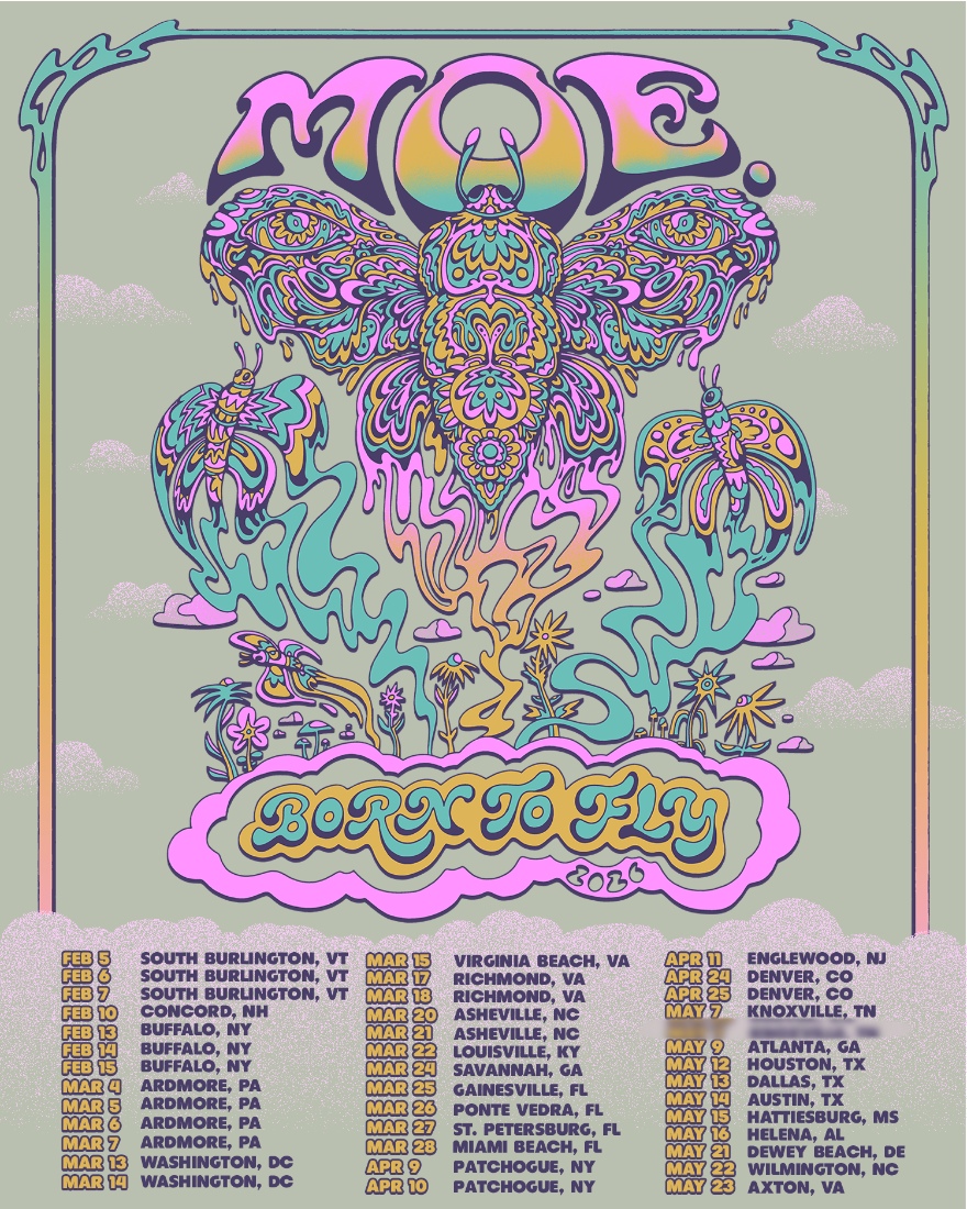 As they wrap up a milestone year celebrating their 35th anniversary, beloved jam band moe. has announced the Born To Fly Tour – 2026. The new U.S. tour spans February through May, with multi-night runs in Washington D.C., Richmond, and Long Island, along with long-awaited returns to cities across the Southeast, Mid-Atlantic, and Texas. The… Continue reading moe. Announces Born To Fly Tour – 2026