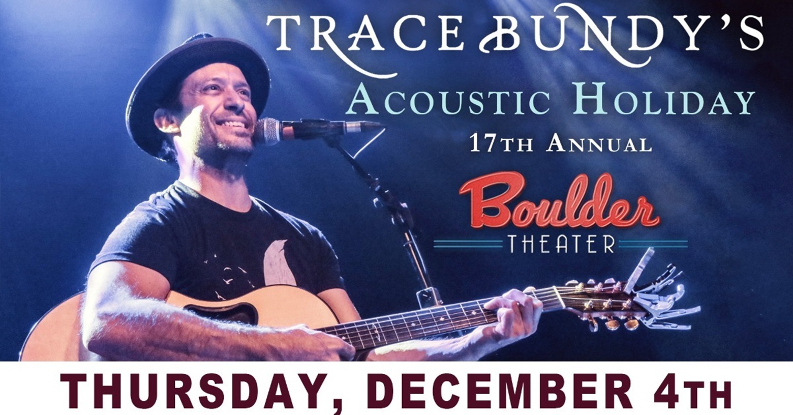 Internationally acclaimed guitar virtuoso Trace Bundy will bring his 17th Annual Acoustic Holiday concert to the Boulder Theater on Thursday, December 4, 2025. Doors open at 6:00 p.m., with the show starting at 7:00 p.m. Reserved seated tickets go on sale Friday, September 5 at 10:00 a.m. via Z2 Entertainment. This all-ages event welcomes fans… Continue reading Trace Bundy Returns to Boulder Theater for 17th Annual Acoustic Holiday Concert