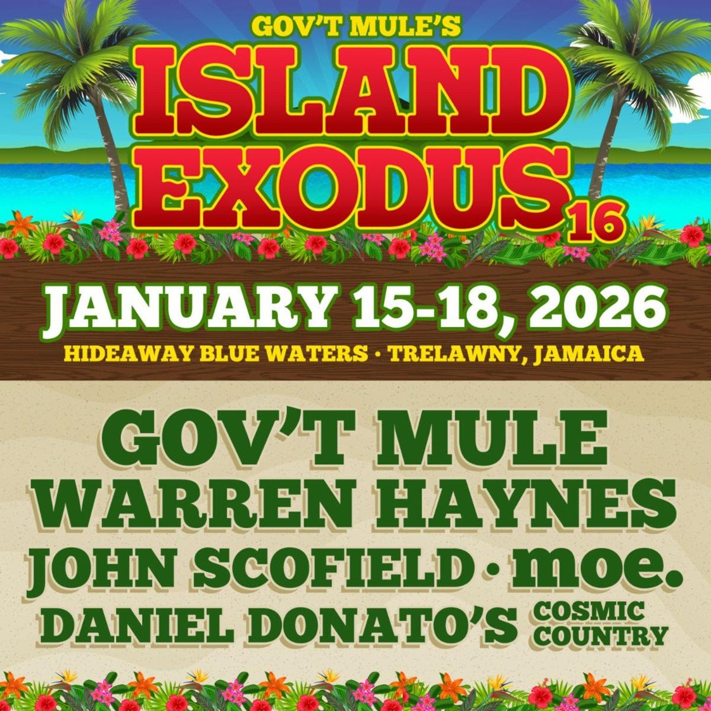 Acclaimed GRAMMY-nominated band Gov’t Mule has announced the details for Island Exodus 16. Their annual “concert-cation” experience will take place January 15-18, 2026 at the Hideaway at Royalton Blue Waters Montego Bay in Trelawny, Jamaica. Marking a new location for Island Exodus, the all-inclusive resort will offer an elevated experience for all attendees and musicians featuring… Continue reading Gov’t Mule Announces Island Exodus 16