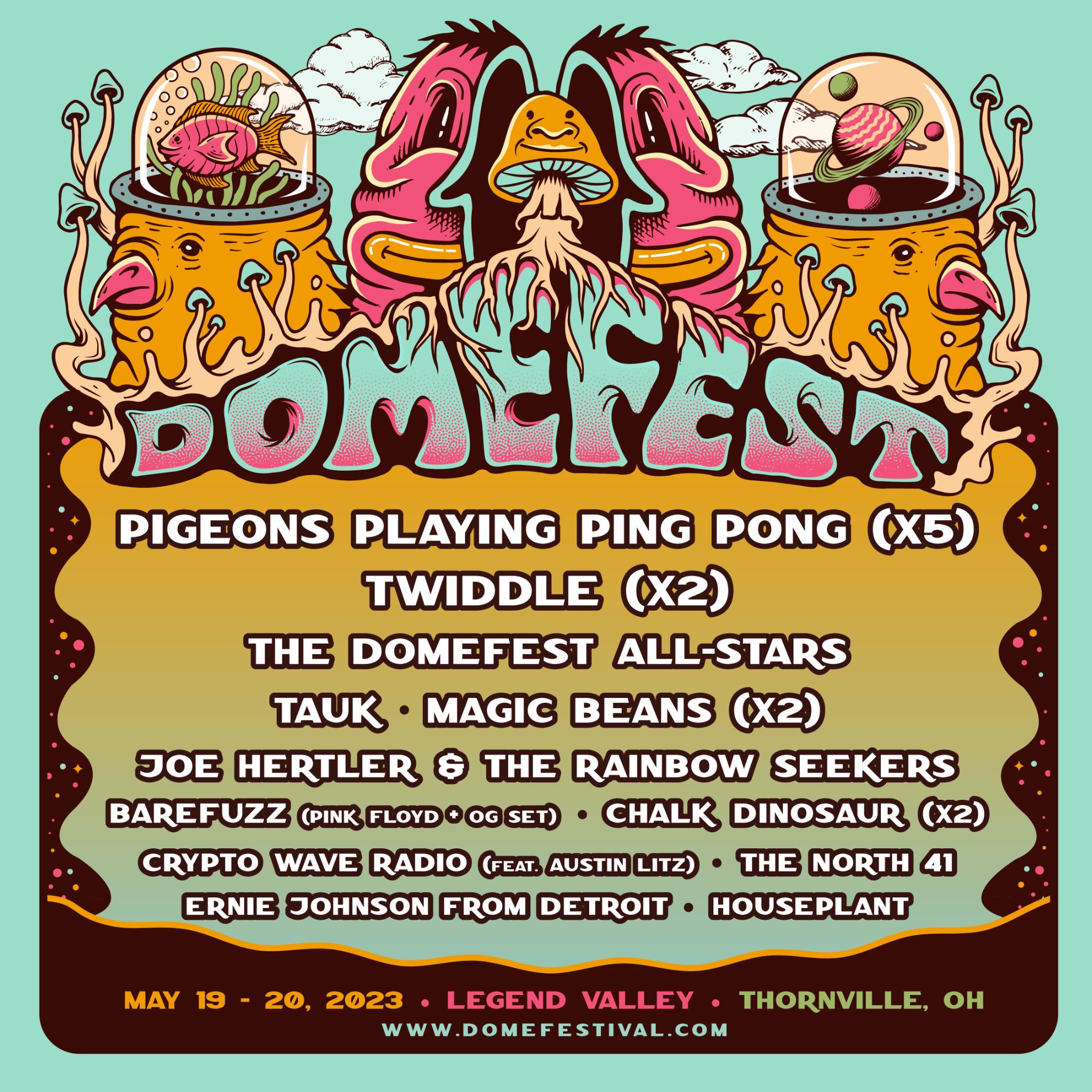 Baltimore-based funk/jam quartet Pigeons Playing Ping Pong has announced the lineup for this year’s edition of their beloved Domefest, a two-day music and camping festival taking place on May 19-20, 2023 at Thornville, OH’s historic Legend Valley. With a stacked roster of top-tier acts and an array of art, workshops, and vendors, Domefest promises to… Continue reading PIGEONS PLAYING PING PONG UNVEILS 2023 DOMEFEST LINEUP