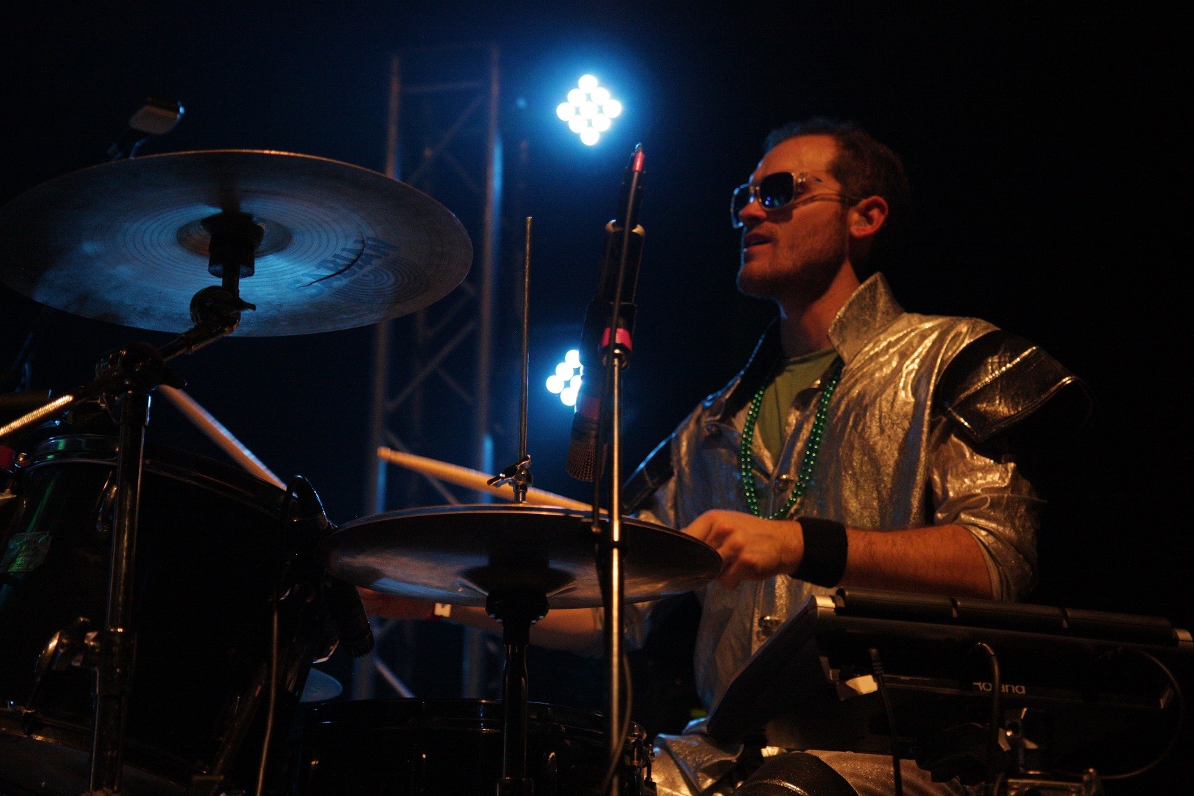 When the four musicians arrived in front of the crowd on St Patrick’s Day, a strong presence filled the room. No doubt their contagious smiles had something to do with the ripple of excited energy through the crowd, but their costumes definitely helped. Frontman, Greg Ormont appeared wearing a Buzz Lightyear onesy and giant goggles—somehow, even while the room grew hotter, he continued to rock the suit. Guitarist, Jeremy Schon wore big bright pants and something that resembled a bright green hawaiian shirt. Bassist, Ben Carrey sported a funky vest and a ridiculously awesome hat. Then, drummer, Dan Schwartz kept the rhythm going with an all silver metallic outfit—with of course some sexy shades. Just looking at the stage you knew it was time to get your party on.