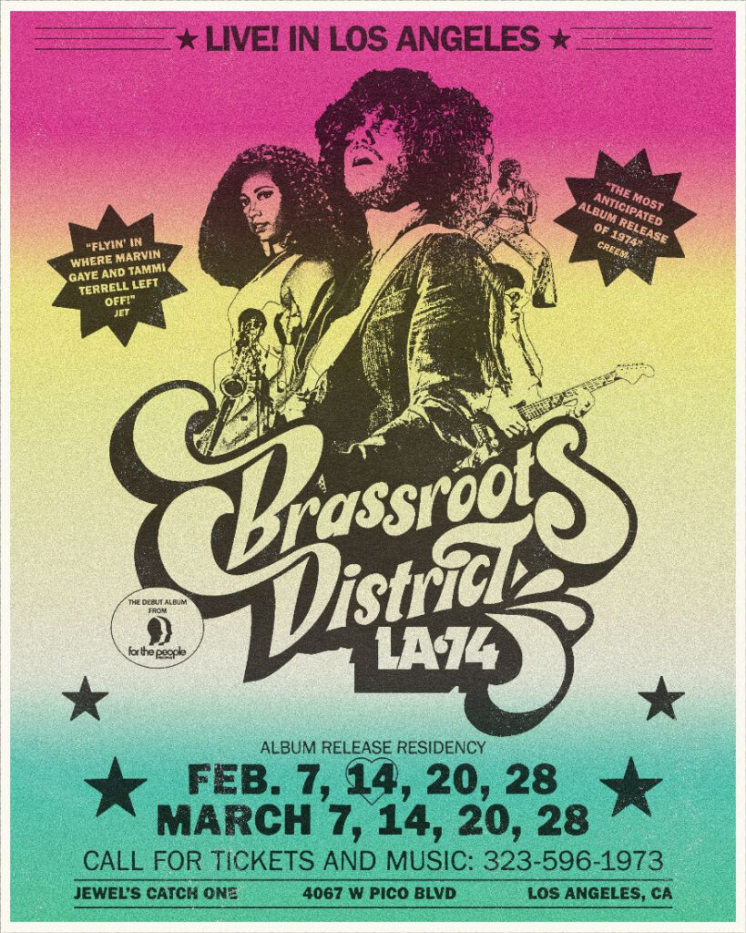 The new single, “Takin’ Back Day Dreamin’” (ft. Robert Randolph), is a pedal-steel-laced slow burn that dares listeners to reclaim their wonder. It’s a dreamscape drenched in groove – and the latest sonic dispatch ahead of the band’s immersive album release residency, Brassroots District: LA ’74, launching February 7th at Jewel’s Catch One.