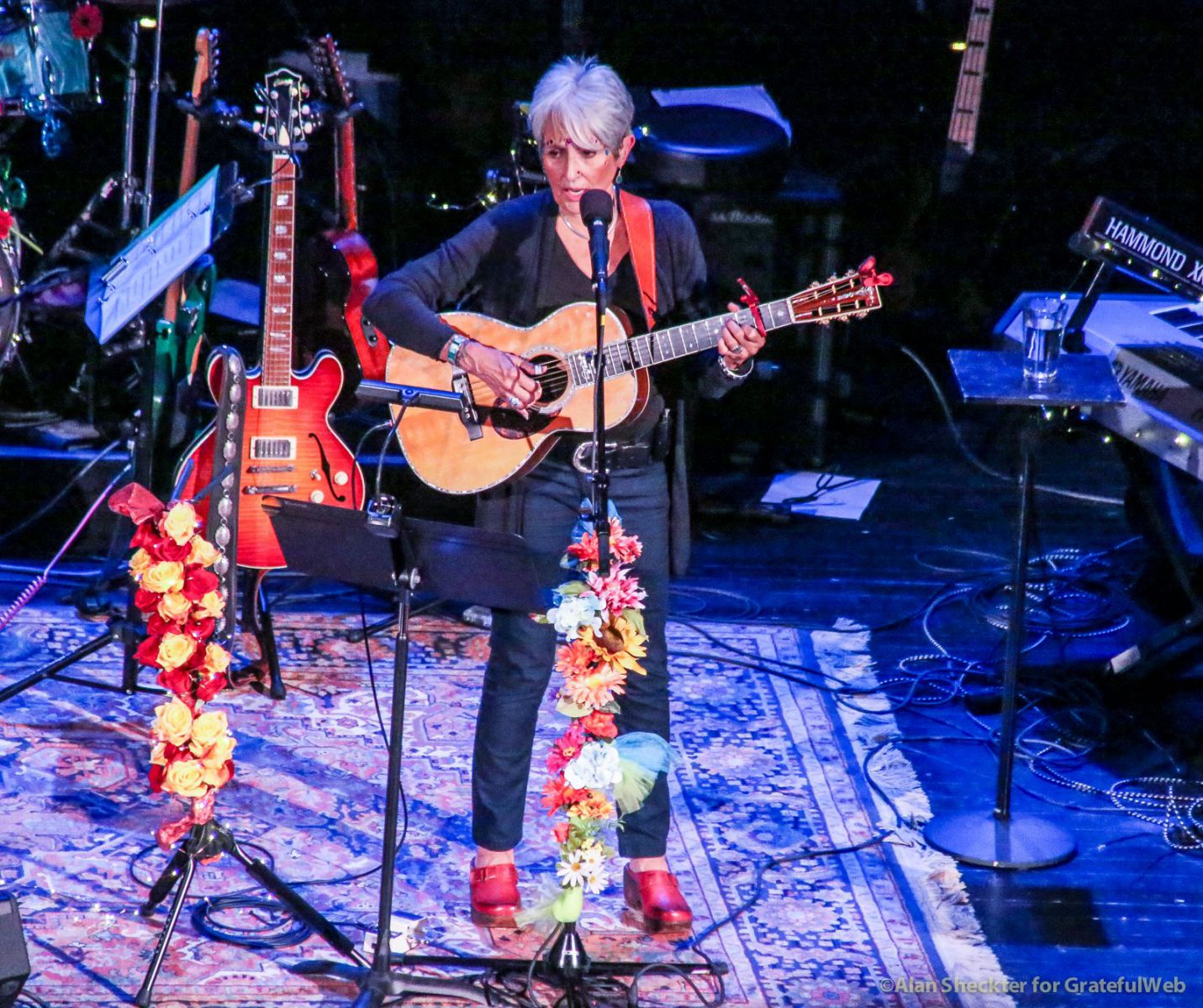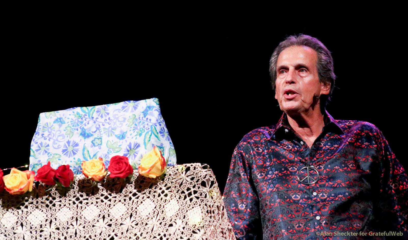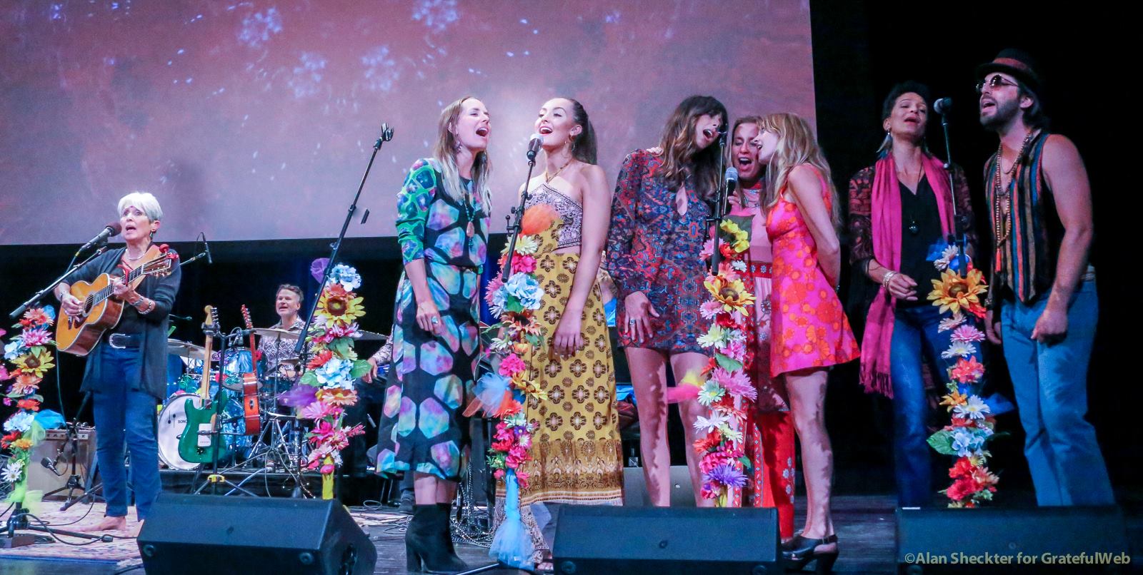 Making a nice segue, Liberatore said that while The Grateful Dead toured with Bob Dylan in 1986 and ’87, there was a performer who collaborated with Dylan far earlier. Applause and cheers increased as the crowd sensed and then watched as the featured performer, Joan Baez took the stage. Now 76 and with a still strong and uniquely distinguishable voice, Baez launched into a captivating medley of Dylan songs. While slides on the big screen showed images with, and without, Dylan through the years, Baez’s solo acoustic set included “Sad-Eyed Lady of the Lowlands,” “I Pity the Poor Immigrant,” “It’s All Over Now, Baby Blue,” “Blowin’ in the Wind,” and “Don’t Think Twice, It’s All Right.”