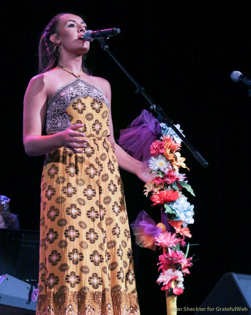 Liberatore then mentioned the tender Marty Balin-penned love song, “Coming Back to Me,” in which Garcia played guitar passages on that Airplane record. The song itself was presented with poise and reverence by 17-year old Caroline Sky, a Marin County, California-based singer-songwriter who, in addition to experiencing rising demand for her own music and performing solo and collaboratively with other famed players, also was a recent contestant on NBC’s “The Voice.”